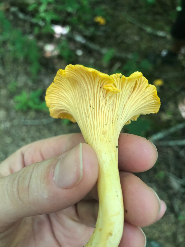 “Are those chanterelles?” I ask Wiggs, pointing in that direction.