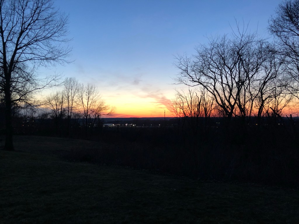 We both felt great and could have kept going, but it was soon around 6:00 PM and the sun was starting to set. We stopped for a quick snack on a log, got cold very quickly, and meandered back towards the car. Before we left we were treated to a lovely sunset over the ridge by the parking lot. Neither of us was ready to stop hiking, but it was still so nice to have visited a new place, climbed a legitimate hill, and been in the woods again.