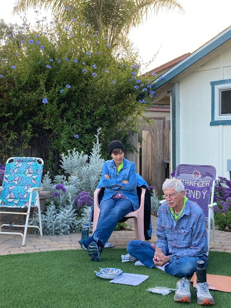This morning Katie drives me to the Oakland airport, where my flight is delayed, then delayed again. I eat a breakfast sandwich and focus on finishing my book so that I don’t have to carry it on the trail. I’m within 100 pages of the end when our plane finally boards. It’s a quick flight, just an hour, and I read the whole time. When I land I follow Scout and Frodo’s instructions to take the flyer shuttle to the Old Town station and then the 105 bus. A quick walk from the stop after that takes me to the legendary trail angels’ house.