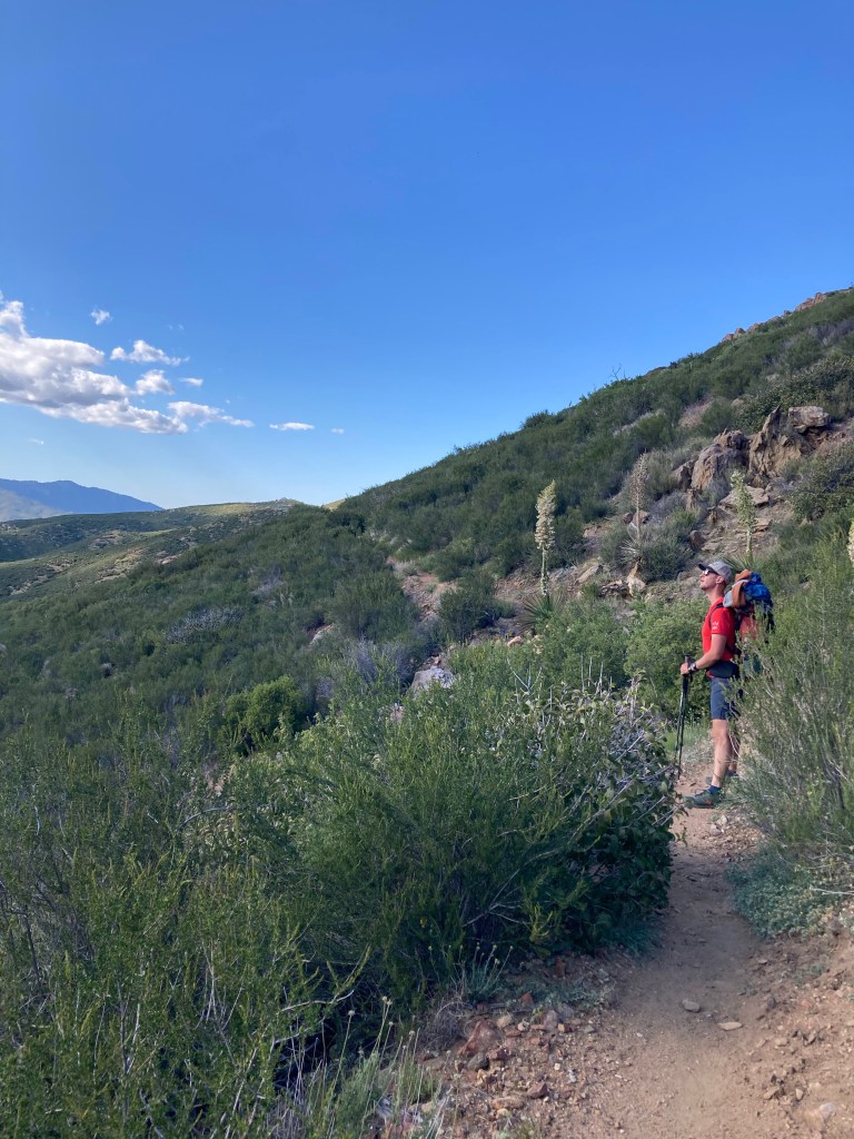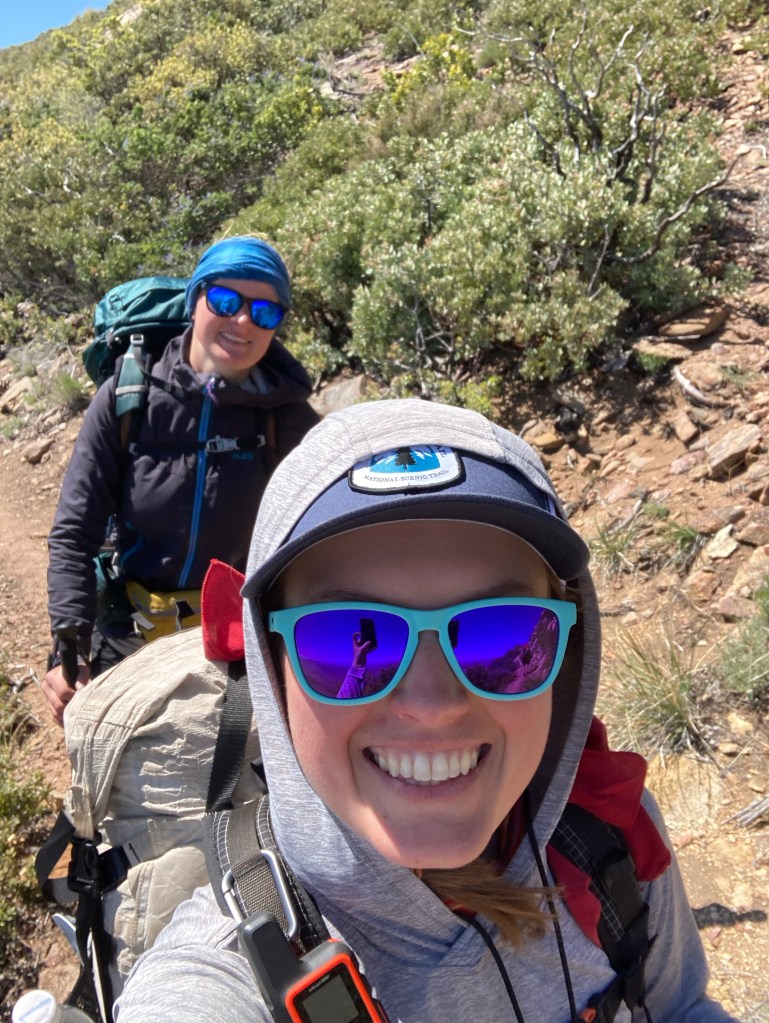 I hit a wall around then. It’s 18 miles, and I haven’t hiked that far in one day since the AT. I get quiet. It becomes hard to form normal sentences. I chug the rest of my Liquid IV water, salty and on the edge of gross. I go into my head then. Feeling slow. Feeling sluggish. Feeling what the hell am I doing. I give grunts and one-word answers to questions.