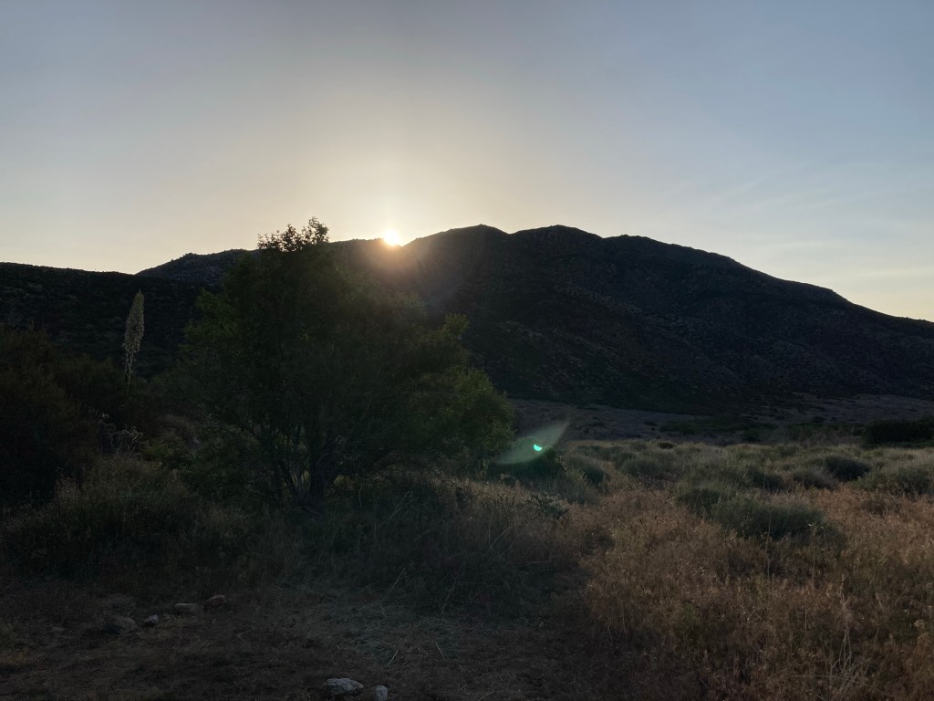 Finally, we stop at the campsite we were originally going to stay at, but after a snack and drink, we agree that we all feel good enough to continue. It’ll be our first 20 miler, already on day five, and it’ll make going back into Julian from Scissors Crossing a little easier tomorrow. I eat some fruit snacks and stand back up. I can do this. Here we go. Deep breath.