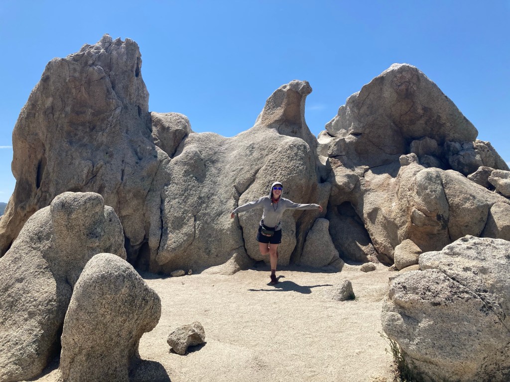 Soon I’m at Eagle Rock, which looks shockingly like its namesake. AMERICA! At the rock we take loads of photos and are treated to trail magic by Hamburger Helper, who used to cook hamburgers for PCTers but had to stop once the trail got so popular. Still, the candy and cookies are pretty great. Thanks, HH!