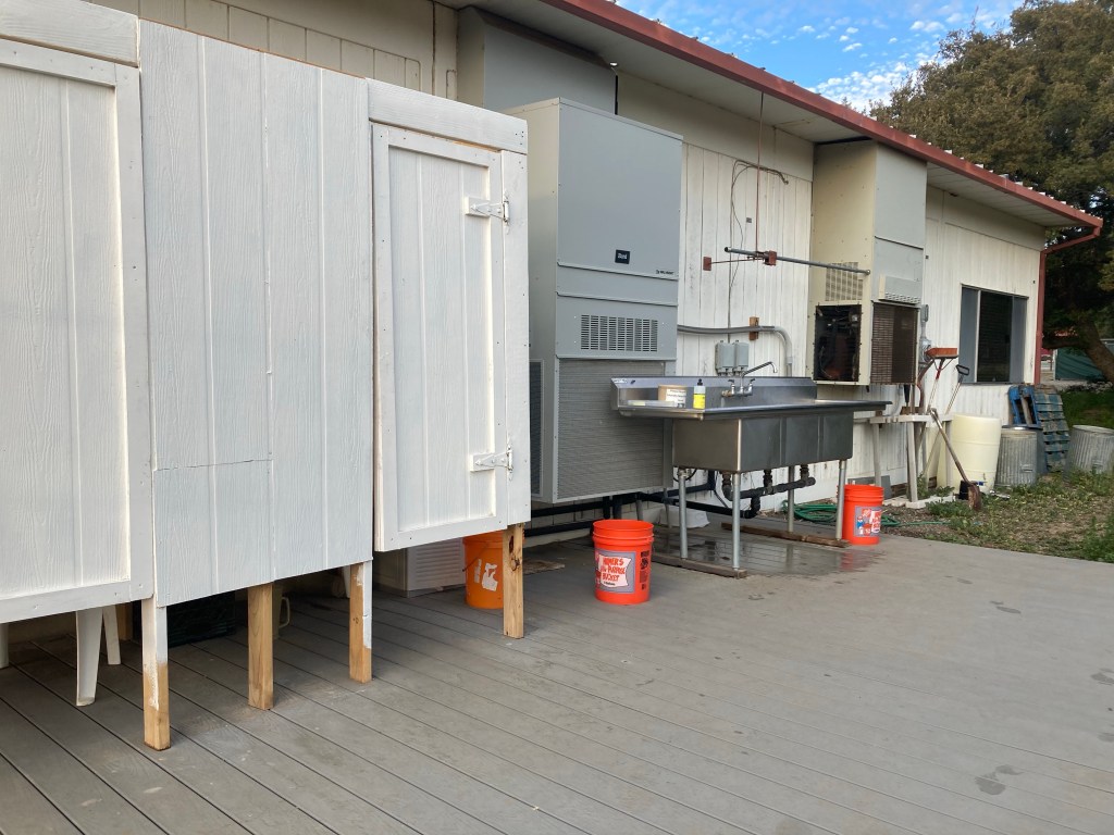 Before we go back on trail, we take a beautiful, leisurely stop at the Community Center. We charge our devices, then take bucket showers, which entail filling up a Home Depot bucket with hot water, going into an outdoor stall, and using a pitcher to pour the water over yourself. It is actually amazing. Petra and I bucket-shower at the same time in adjacent stalls and giggle through the whole experience. Next we do laundry in buckets, and finally, we decide to cook dinner there rather than going back on trail first. Dinner for me is a Fernweh Food Co stew of coconut rice, red beans, and vegetables. It’s so good. Kudos, Fernweh!