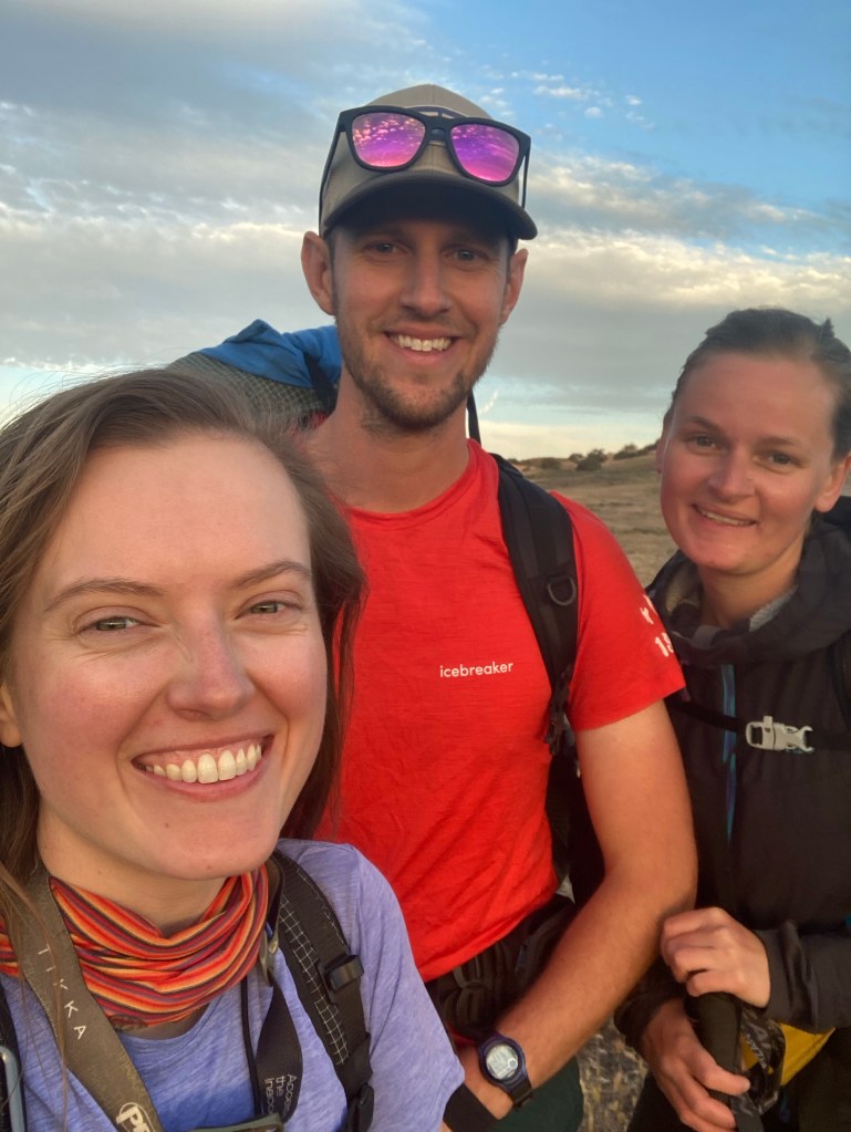 Andy is doing this thing now where he sets a time for me to be ready and a separate time for him and Petra. You know, because of my complete inability to be ready to do things At Times. The result is that I am technically ready to go by his time of 6:45, although one of my 700 mL water bottles has mysteriously disappeared and I can’t find it, not even on the top of the hill where we watched the sunset last night. Mountain lion? Practical joke? Extremely thirsty hiker? I shrug it off and get ready to go.