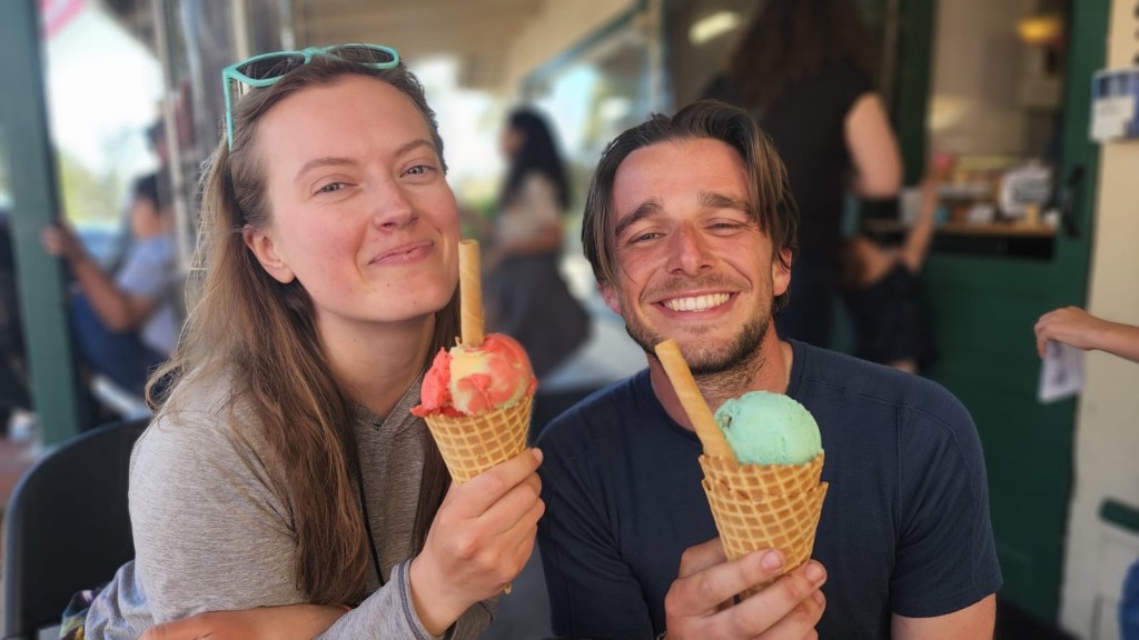 After breakfast we resupply at the market, visit the local outfitter Nomad Ventures, then go back to the hotel and organize our food bags. Then it’s back to town for ice cream. DLT, true to his word, buys me a rainbow sherbet cone for winning our little packing up challenge the other day. It tastes like victory.
