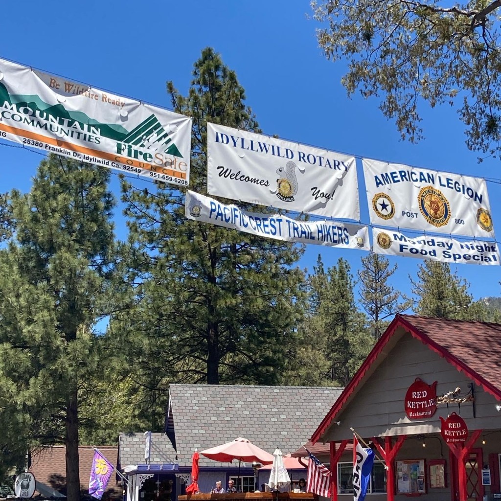 One of the things Idyllwild is known for is its mayor: a dog named Max. We’ve heard that Max makes an appearance every day at 4, so we wait in the town square. When he doesn’t show up, DLT calls his office and learns that he was already out and is now back home, but DLT arranges for us to see him early tomorrow morning before we leave.