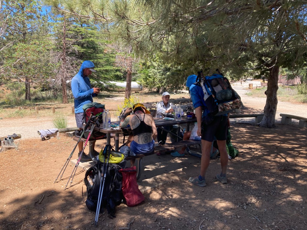 There’s a beautiful water cache here. I fill up and chug a liter, then have a huge lunch because I have more food than I need in my food bag. I’m so happy being here with Andy and Beetle again! We stay for about an hour chatting to some other hikers, then we pack up to continue our hike. It’s only eight miles to Acton, where there is a campground, cold drinks, and supposedly a pool. We’re keen to get there because it is getting ungodly hot.