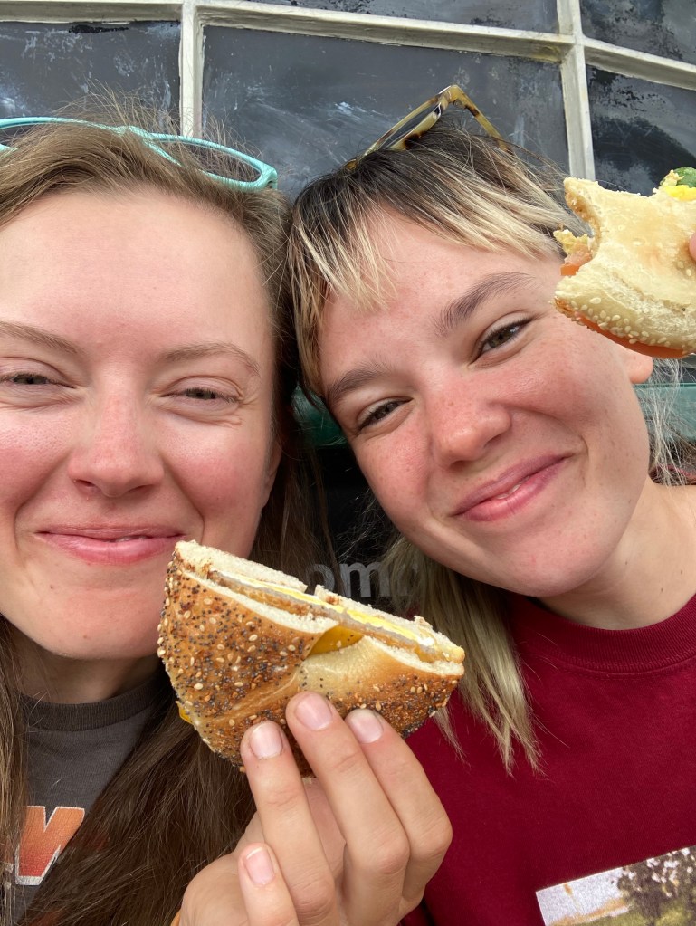 We both start getting properly conscious around 8:30. I take my laundry out of the dryer but stay dressed in Ellie’s loaner clothes: a Star Wars: The Force Awakens shirt, running shorts, and a comfy black sweater. We drive to Noah’s Bagels, where I order a sausage, egg, and cheese sandwich and a blueberry bagel with honey walnut cream cheese and, obviously, eat both of them. I also have a real coffee with cream and sugar. I’m sorry, but one of the best reasons I can think of to thru hike is the profound joy of eating inordinate amounts of food.