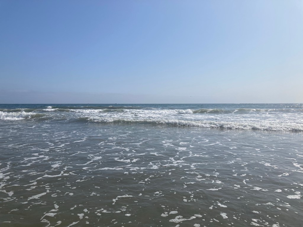 We have a few minutes after that, so we walk to the water and I get in up to my knees, letting the cold salty water wash over me. I love the mountains, but there is something magical about the ocean, the edge of the world. It smells so salty good and feels so peacefully massive. Yeah, I’m hiking really far, but the size of the ocean? Unthinkable. Can’t hold it in my brain.