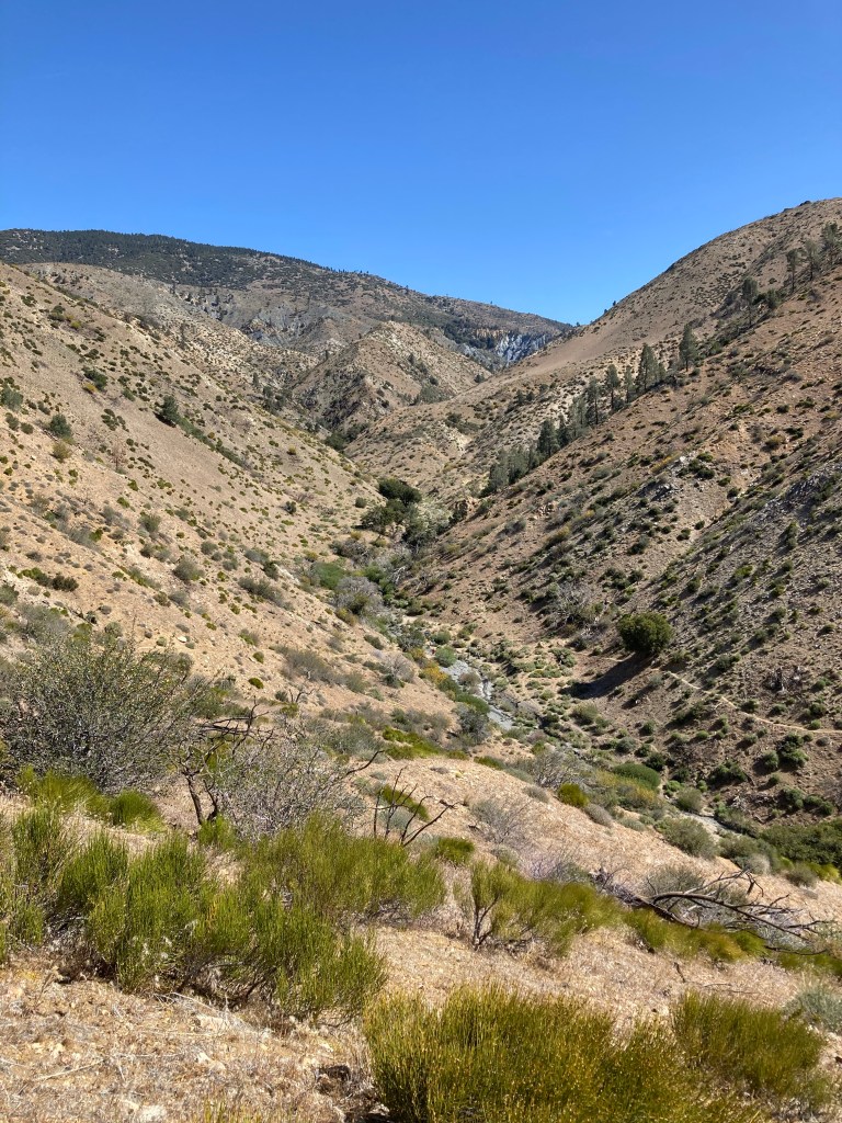 After sucking down another liter of water and filtering three, we decide that it’s time to start moving. It’s hot, dusty ridge walking for a few miles, then the trail takes a big dip into a valley before going right back up for four miles. I tell DLT that I need to put my headphones in and go to music land for this one, and he does the same. He’s much faster than me on the uphill, so he goes ahead. At first, I feel pretty good. The hill is nicely switchbacked, not too steep. But when I feel like I’ve gone about a mile, I check Guthook. Not even 0.5. This is going to take a while.