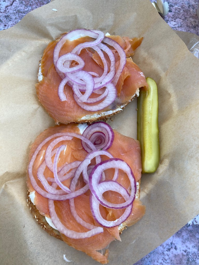 We loved Kohnen’s Bakery so much that we go back there for round two. Obviously, I drink another Bundaberg peach soda. I also devour an apple strudel, a bagel with lox and onion, and a coffee. Oh, sweet, sweet zero day. We sit there grazing for a while, chat with a few locals and travelers who see our packs and want to know about the PCT, and then we start moving.