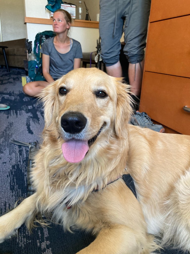 Almost all of us have questions to ask her. DLT rolled his ankle just before Acton and wants to make sure that it will get him through the Sierras. Petra has been having persistent heel issues, and Morgan tells her how to tape her feet and which shoes would work best for her (Topo Ultraventures, obviously). I ask about managing my ever-present achilles tightness and arch pain, and she gives me some exercises and stretches. Meanwhile, Honey makes herself right at home by jumping on the beds and snuggling with whoever is right next to her at any given time. Thank you, Morgan and Honey!