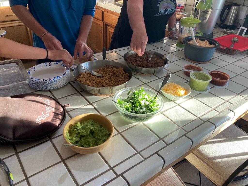 Soon, Judy calls us inside and we queue up for chicken and beef tacos on corn tortillas with guacamole, cilantro, cheese, three different kinds of salsa, and rice. It is next-level. We eat around a table on the deck while Judy and Dave’s dogs chase Honey around the backyard. It’s one of those simple but deeply meaningful trail moments. We’re just chatting. We’re just eating food. We’re just laughing and sharing the same space for a minute or two and being here together. And that is the simplest and best kind of magic.