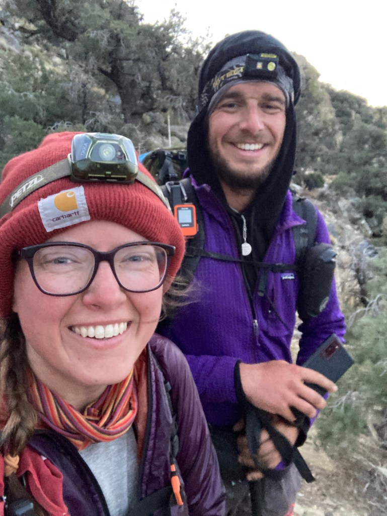 By the time we get to the top, it’s nearly sunrise. We find a campsite that is mildly protected from the wind and have a snack and water. I do not feel good this morning. My arch and achilles are tight and burning. I was trying to get that hill done as fast as possible, and I didn’t stretch or take ibuprofen. There’s no time to stretch here; the wind is still whipping around us, and I can’t feel my hands. Keep hiking.