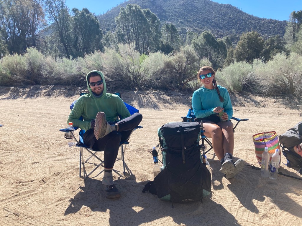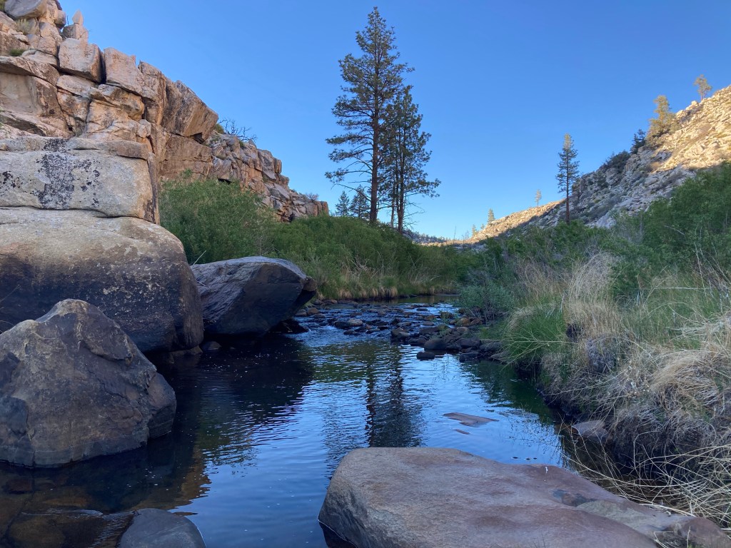 There’s nothing better than running into a member of your tramily after a few days apart. We catch up on what we’ve been up to and how the last part of the trail has been for us. Then we walk to the South Fork of the Kern River, which is a magisterial sight. It is a deep, flowing, gurgling stream. It is so beautiful to see so much water, not a trickle or a sad spring full of frogs (nothing against frogs) that takes ten minutes to fill. DLT and I sit on a rock and put our feet in while we talk with Catless and the four Belgians who are hiking together who we’ve seen a lot in the past few days. Eventually I can’t feel my toes, and we keep going another half a mile to a campsite beside the river.