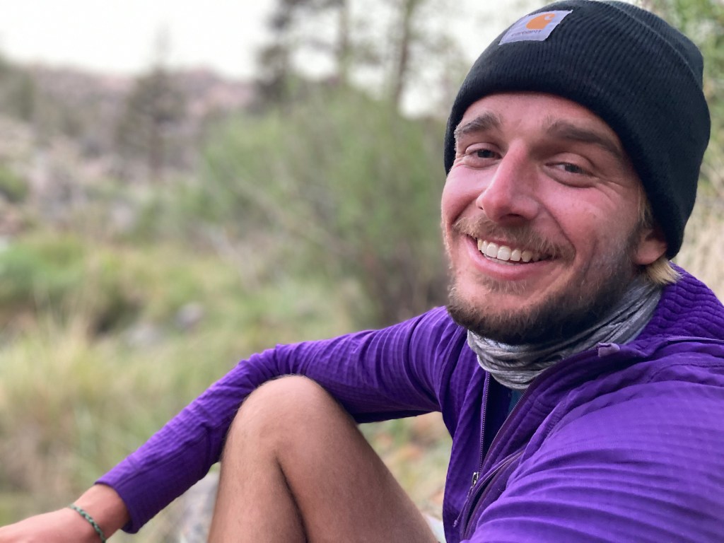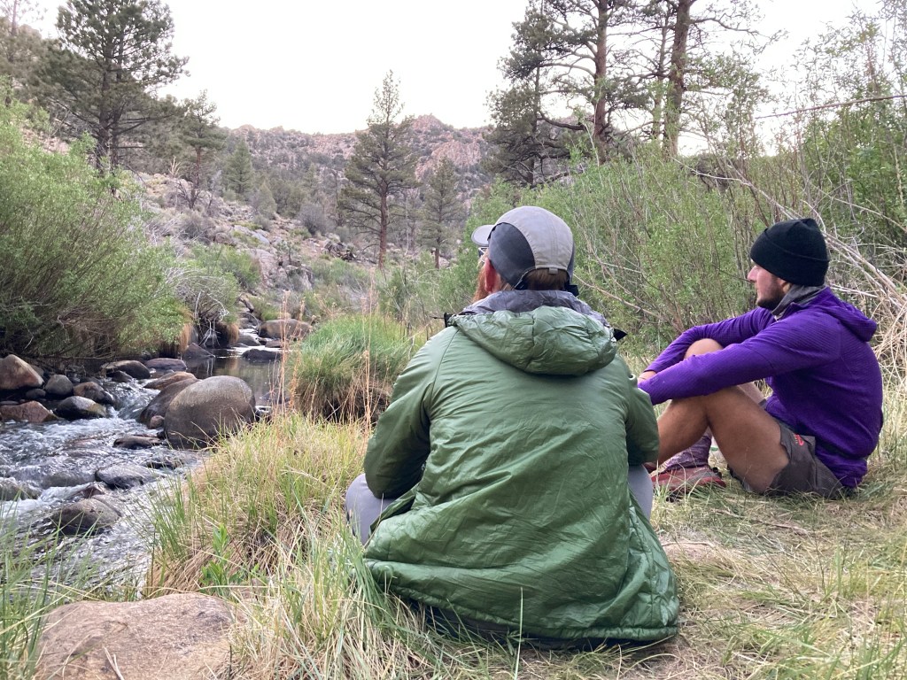 This trail is a masterpiece. There’s not a single switchback, just a continuous gentle path leading all the way down. I listen to Father of the Bride all the way through again, then Free Love by Sylvan Esso, and by the end of that I’m at the water source, where I meet back up with DLT, have a little lie-down on the ground, and filter.