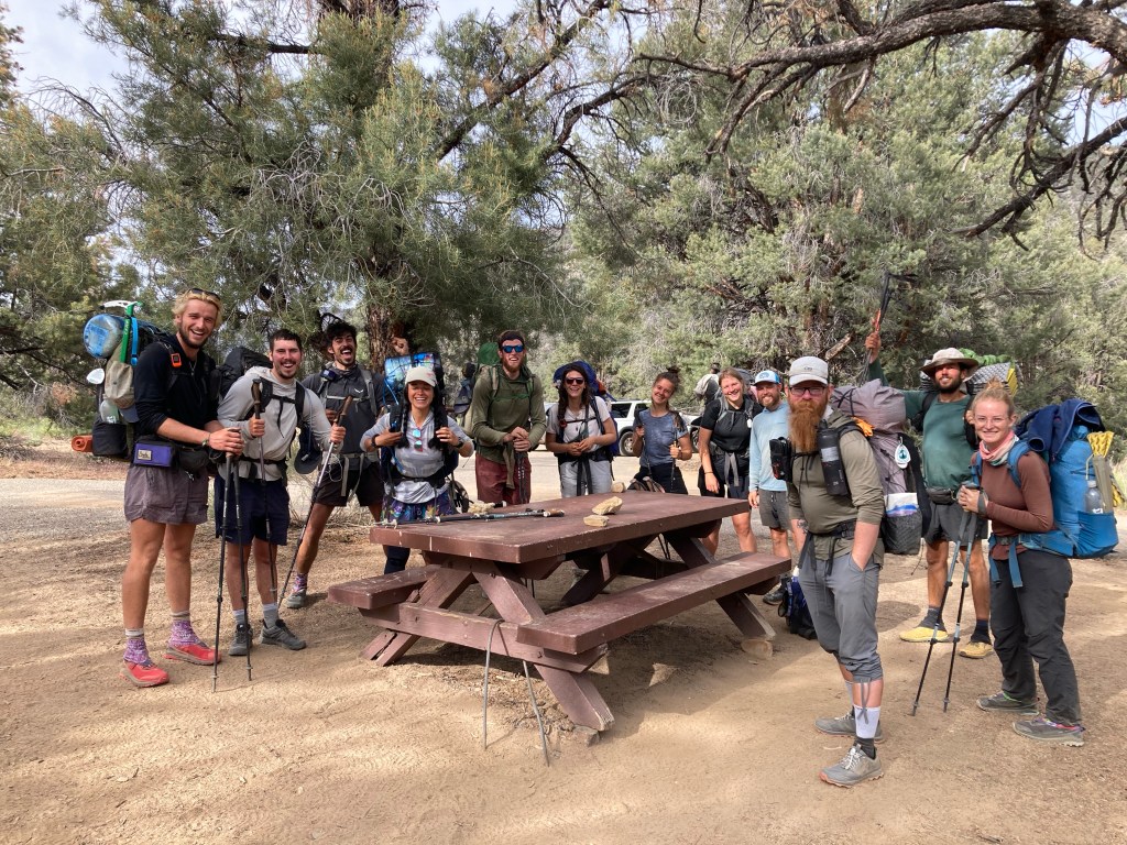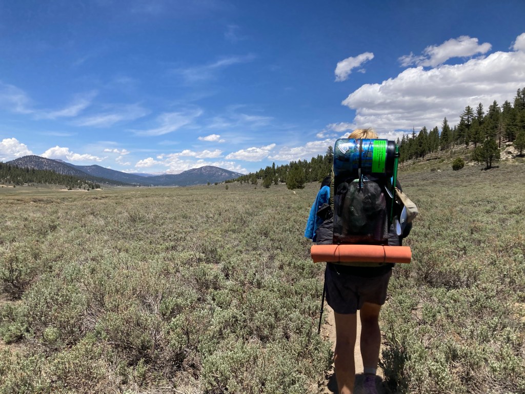 Morning is a flurry of packing, eating breakfast out of the hiker box, coffee drinking, and using the bathroom at Grumpy’s on more time before we head out into the mountains. I manage to fit my ice axe and bear canister on my pack, and while the weight of it is much less than the pack I took into the Sierras in 2017, it’s still much heavier than I’m used to in the desert. Oof. This is going to hurt.