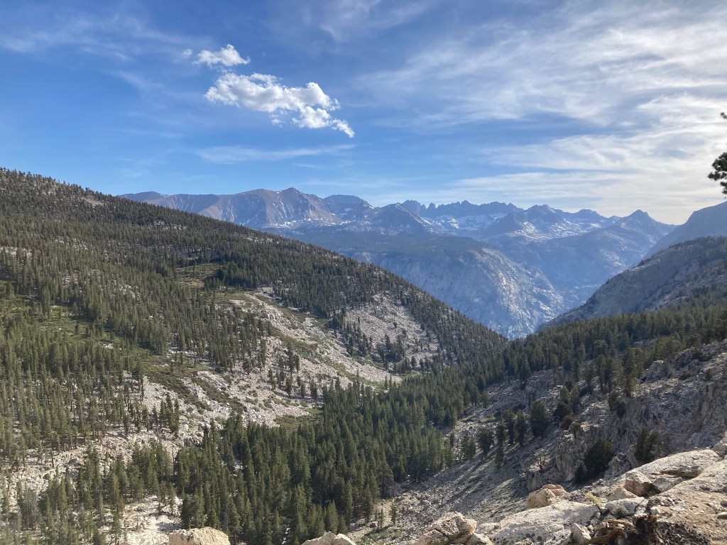 We all lay down in our tents to take naps, but our tents are in the sun, and while I do sleep well for a while, I wake up drenched in sweat and take my sleeping pad over to the shade and finish my nap there. Around 3:30, we start hiking again. We need to make it to Tyndall Creek so that we’re in a good position to do Forester Pass tomorrow.