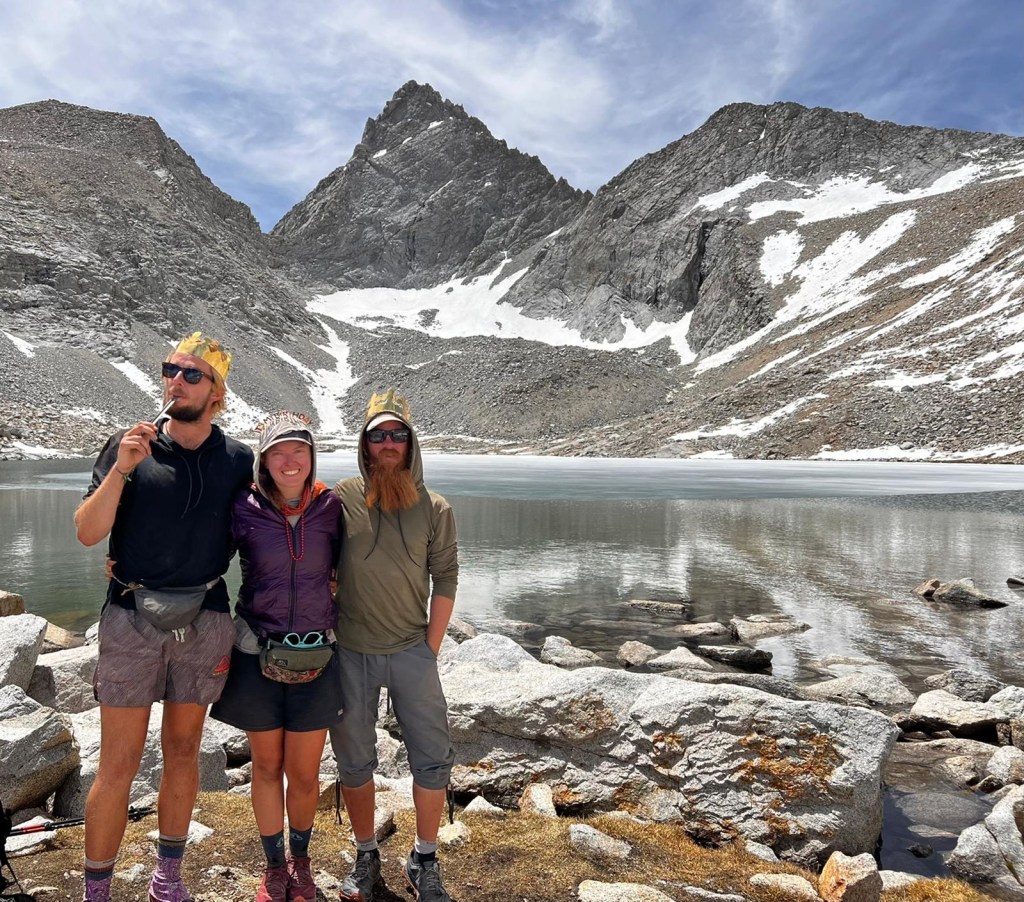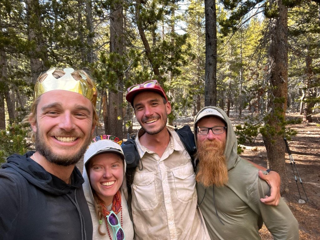 We all collectively try to keep our cool as Jupiter walks over towards us. He is the chillest dude, just another hiker—albeit a famous one—out here enjoying the adventure. We talk to him about his journey so far. He asks if we’re going into Bishop and tells us that it’s a great town. Noticing my headband, he wishes me a happy birthday. We take a group photo, wish each other well, and then he’s off.