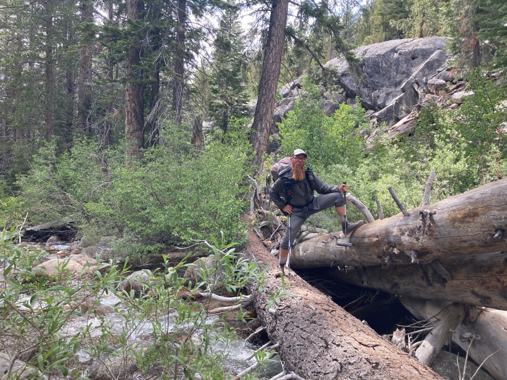 There’s a crossing that I remember vividly from 2017. That year, the creek was gushing across the trail in the evening and I didn’t want to deal with it, so we just camped right before it. This time, we easily find the huge log upstream and cross on that. Then, back on the trail, we start the uphill climb towards Silver Pass.