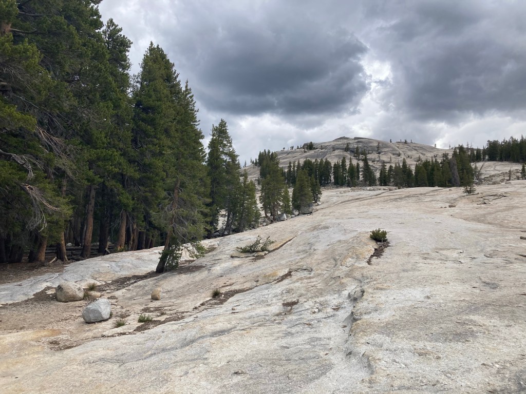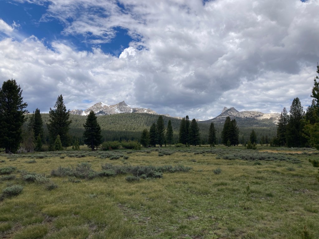 After that, I let them get ahead of me. I love Tuolumne, I love Yosemite, and I don’t want to rush past it. This huge meadow is so impressive. We make a stop at Soda Springs to see the bubbling water, and after that the boys blaze ahead. But I hang back, listening. I have a deep urge to stop and sit under a tree, not because I’m tired but because it seems such a shame not to drink in this place. I want to be like Kya in the marsh in Where the Crawdads Sing. I want to take in everything around me and learn it. Sometimes I love hiking for hiking’s sake, but it strikes me in this moment what a shame it is that often thru hiking necessarily puts miles ahead of moments. Isn’t it just an extension of colonial thought to “crush” big mile days or “destroy” a big section of trail? It’s hard to feel present and determined at the same time. I want to drink in Yosemite and Tuolumne gently, not inhale it or get through it or pass it by.