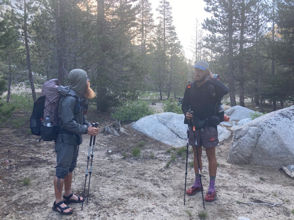 We hike together for a while after that. It’s a nice change from being alone all day yesterday. There’s a wide, shallow creek crossing where we stop for water, then the start of a very gradual climb to Dorothy Lake Pass. I return to my audiobook for a while. I’m almost done with this one now, too. I drift away until we stop for a quick lunch on a rock. Then it’s go time again.