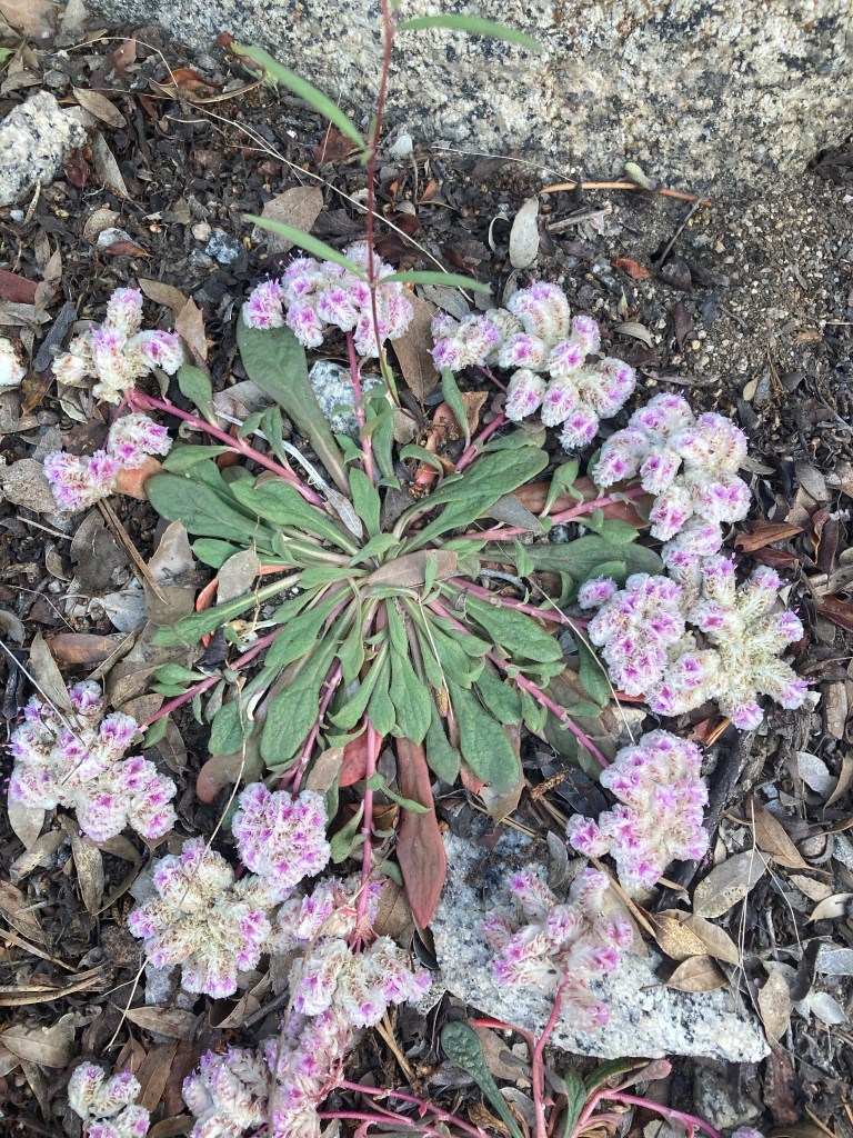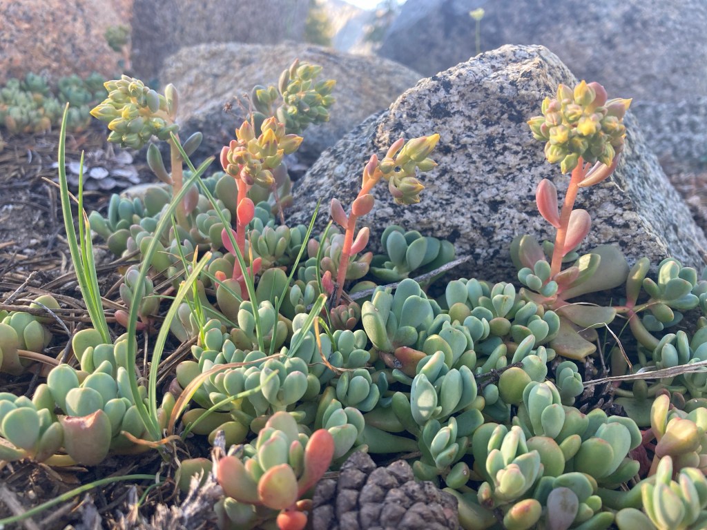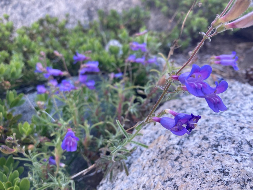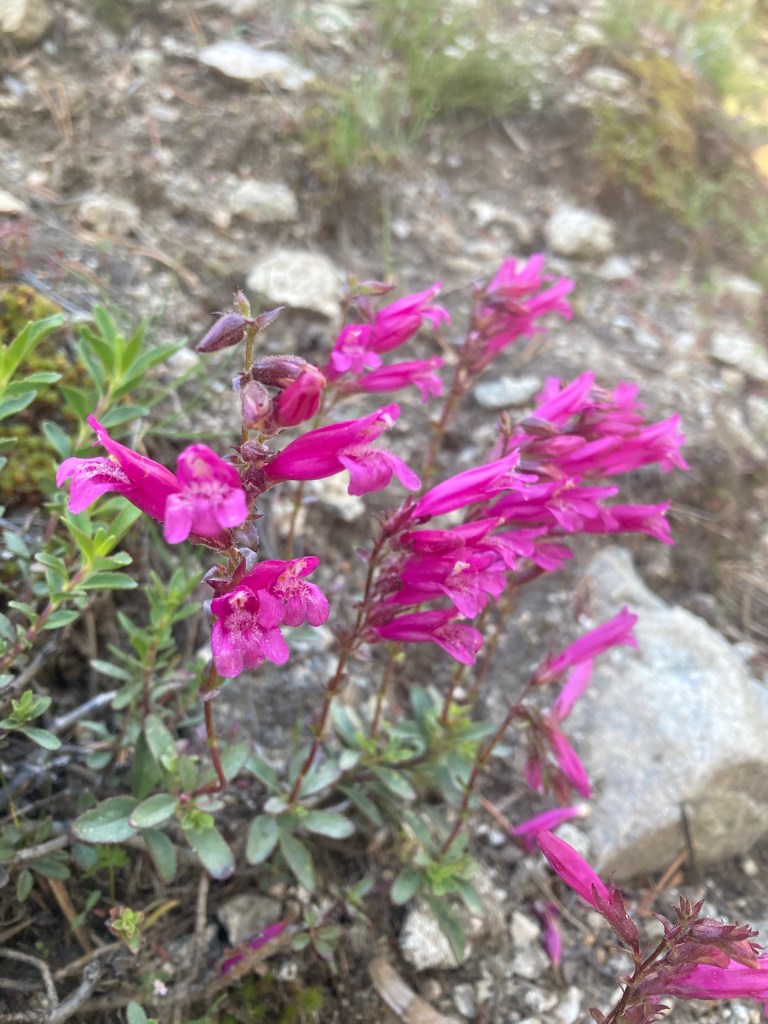 It’s two hills back to back to start, and they are brutal. It’s straight up and straight back down. Excuse me, I thought I signed up for nice tread and switchbacks? This is the PCT, not the AT. But honestly, I’m not that mad about the first climb because there are wildflowers everywhere. There’s paintbrush, my familiar friend. There are pink and purple and yellow flowers. There are even succulents blooming on the rocks! I am so delighted by all this plant life that I don’t really pay much attention to the climb, and soon I’m at the top and turning down again. It’s a rocky, muddy, punishing downhill that goes on for way too long.