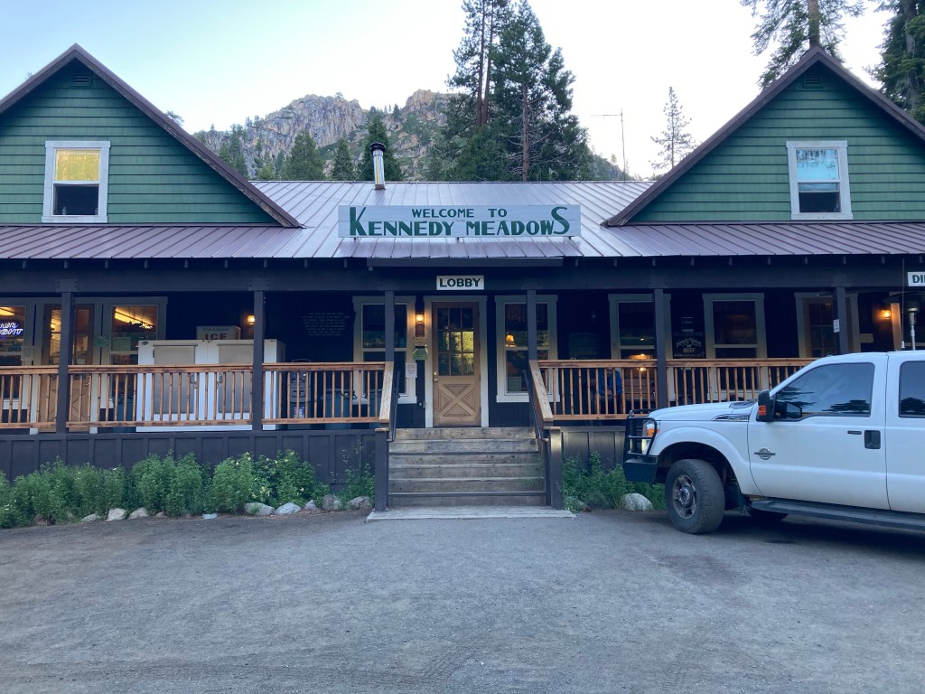 At first, Kennedy Meadows North seems better than the South variety. There’s a well-enough stocked general store, a restaurant, and a big area out back for hikers. On the front porch, we’re delighted when we see Power Plant, then Knuckles and Topo! It’s been a while, and we have a great time catching up.