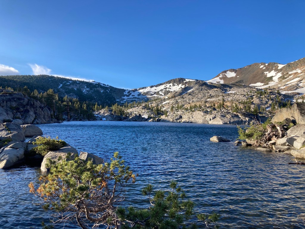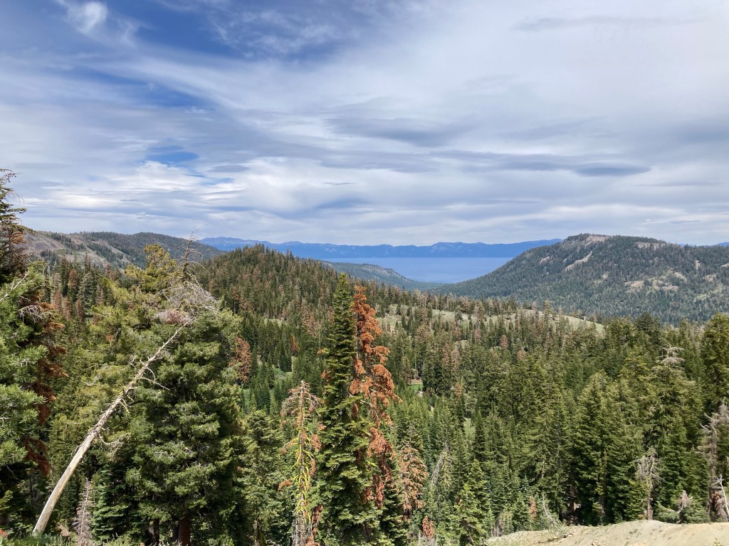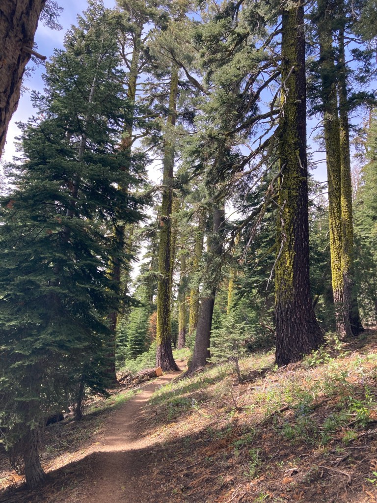 There’s an amazing view of Lake Tahoe at the top of the hill, and then we’re going down again. The trail is rocky sometimes and smooth dirt path at others. I’ve finished my book by now so I’ve moved onto music. Am I becoming dependent on audio content? Is this cheating somehow? I don’t know. But as the trail turns upwards yet again and starts switchbacking through thick stands of fragrant trees, I’m grateful that I’ve downloaded Butterfly 3000 and I’m absolutely rocking out to “Catching Smoke.” Why am I in such a King Gizzard mood on this trail? This album slaps so deeply and I can’t stop.