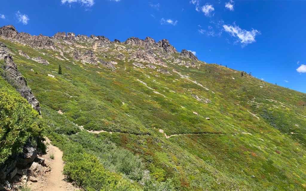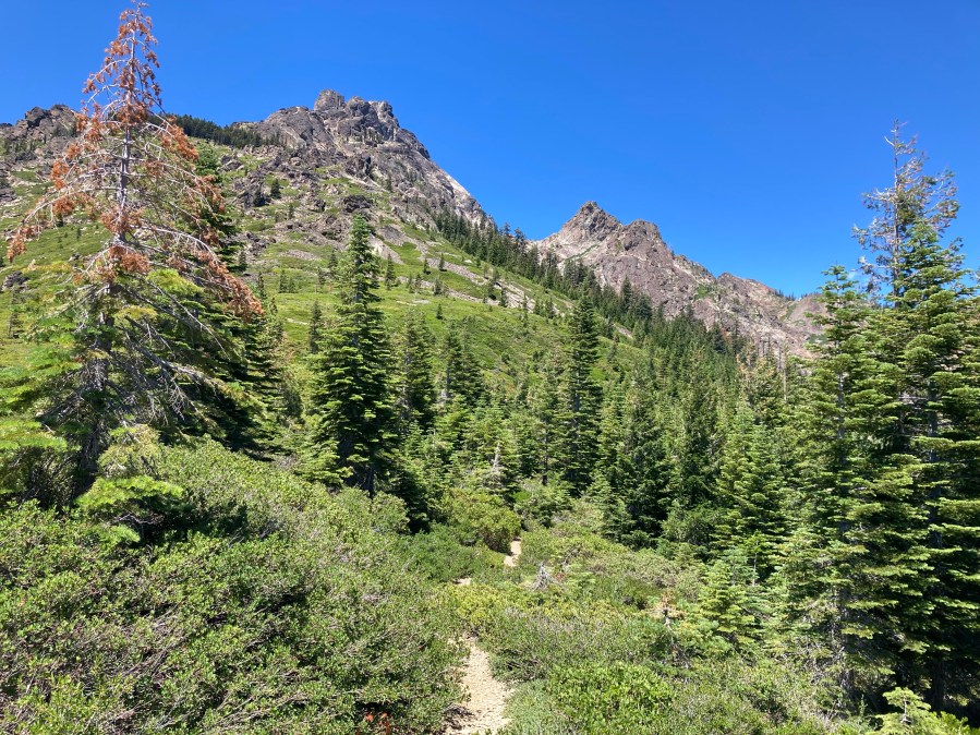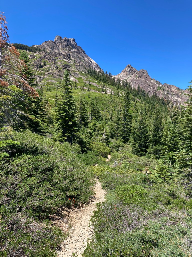 I’m mentally prepared for this 8-mile climb up to the Sierra Buttes to be terrible, but it’s honestly not that bad. The switchbacks are mostly in the trees for the first few miles up to the campsite. I listen to Butterfly 3000 by King Giz all the way through, then start it over again. I think I’m going to break these songs. I can’t get them out of my head. Eventually I get tired of that and move to Bombay Bicycle Club, but I’m not really in the mood for it so I kind of zone out.