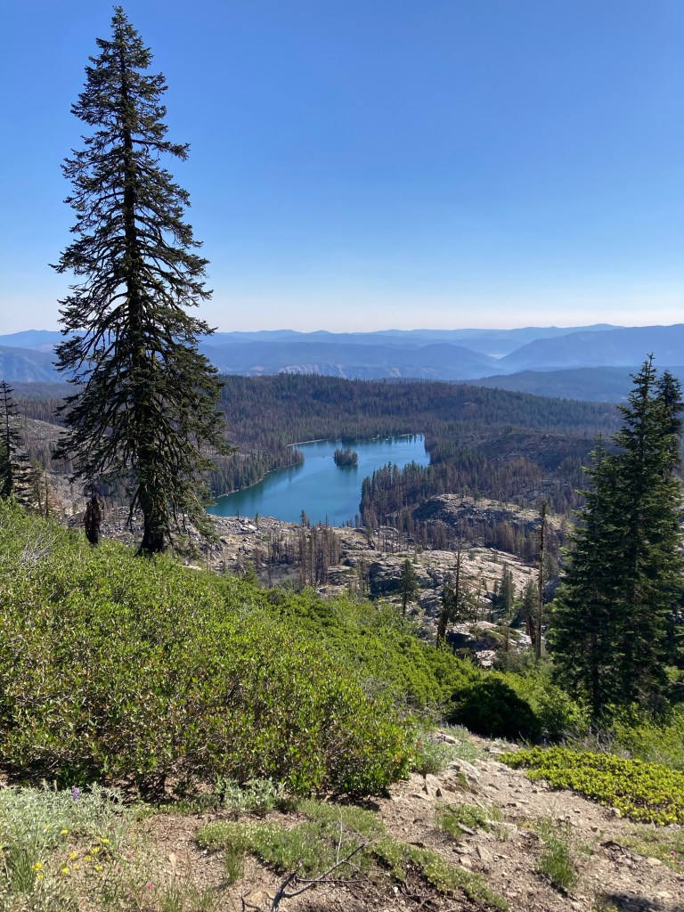 We head up the hill out of Belden, and while I’m not that happy about it, I know it would be way worse in the morning. It’s exposed, ashy, and barren from the fire. There are overgrown plants and rocks and it’s just a lot in the evening of a hot day. I trudge behind the boys until Jumbo waits for me at a spring, telling me to go ahead of him because he knows I hate night hiking and he doesn’t want me to be left alone at the back.