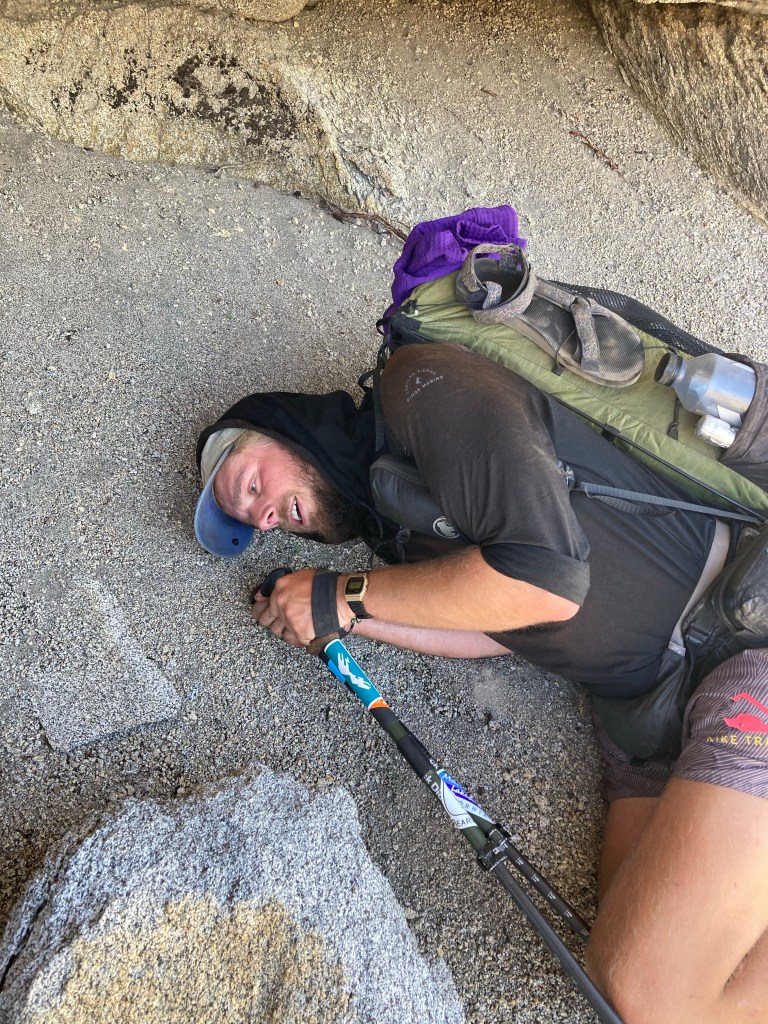 We eat lunch outside at a collection of rocks set up like a table. Then we all lie down and try to nap. My spot is a little buggy, so I move over to some grass and absolutely pass out. Before I know it, Tribute is coming up to me and saying that they’re getting ready to move. Ugh.