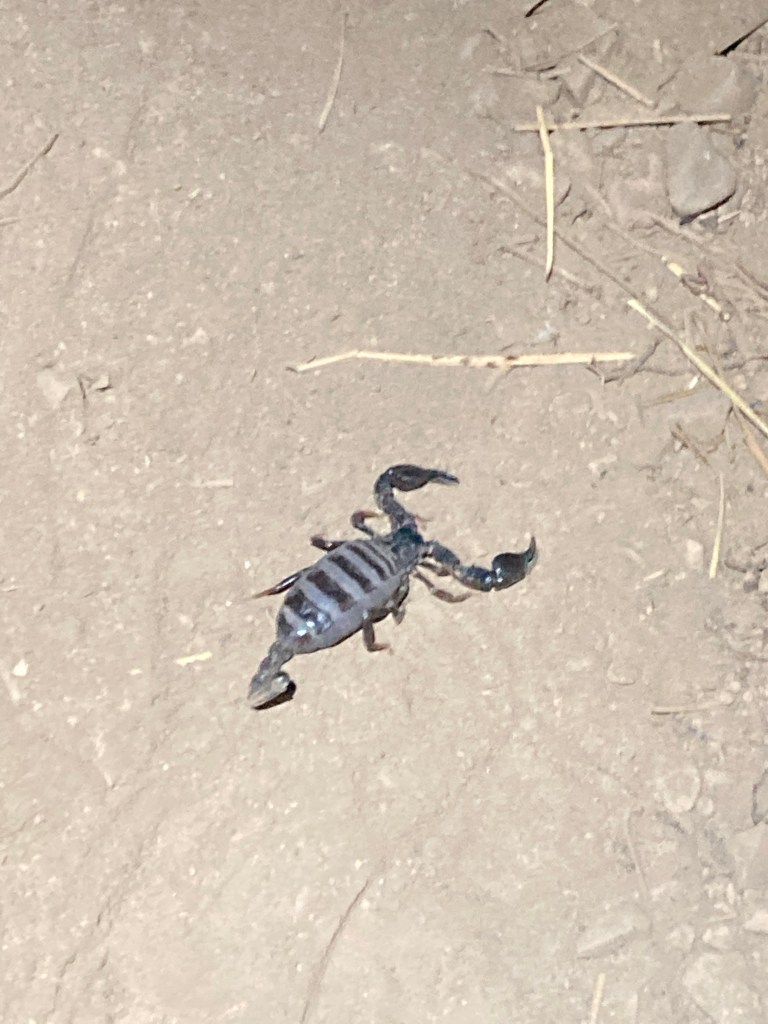 We finish the last couple of miles together, each lost in our own music world. We find a couple of millipedes and, excitingly, a scorpion. Finally we see Tribute by the side of the trail next to his camping setup. Jumbo and I both throw down our gear for cowboy camping, then I make my couscous dinner by cold soaking. Not bad, actually. Now my eyes are closing and we have an early morning to beat the heat.