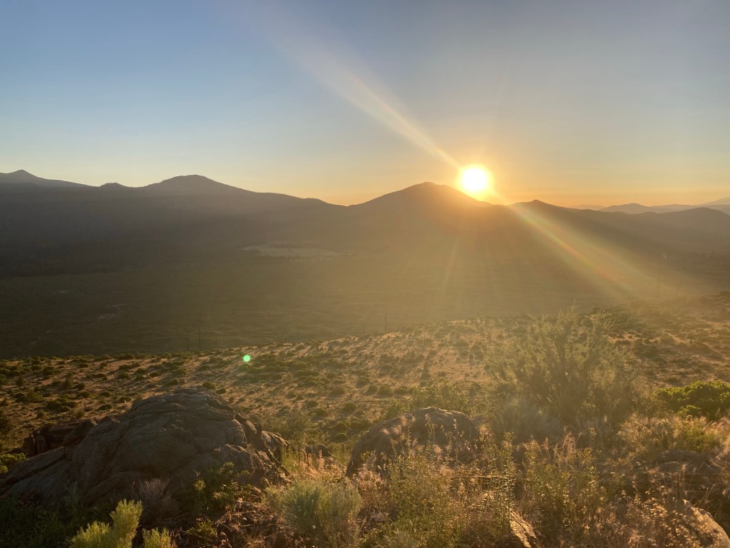 Back on the trail, we have a few moments of flat before it turns upwards towards the Hat Creek rim. I manage to stay with Jumbo up the hill, which I’m proud of. I think I’m just in “hike as far as you can get today” mode. At the top of the hill there’s a pit toilet with a few hikers clustered around it. “Want some trail magic?” we hear someone say. Turns out, it’s a trail angel named Pause (or maybe Paws?) who hiked the PCT in 2017 and is doing a little magic today. We’re at the tail end of it, but there are still cold beers and fruit. I take a beer and sit gratefully in the shade. But I think it messes up my stomach because I feel terrible right after that, and we end up sitting for longer than planned.