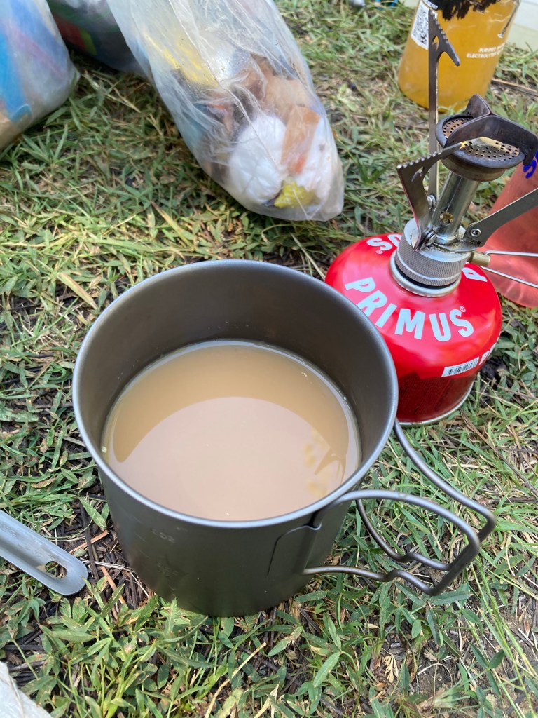 After lunch Jumbo gives me more Yorkshire tea and milk, which I consume in a fit of pleasure while lounging against my pack. We’re all lounging, actually. Hard. I point this out, and Jumbo says, “Big lounge energy.” I’ve loved the lounging these past couple of days, even if it means we’ve been moving slowly and getting to camp later.