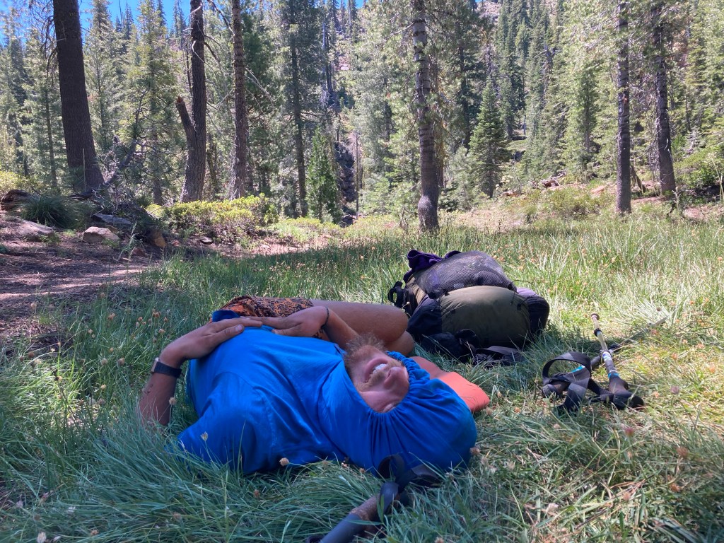 The afternoon pretty much goes on like this. I trudge until I need a break and then plop down in the shade. Then I work the energy back up to keep going, and plop down again. I have service at one point, so I add more photos and videos to my Instagram story and text-whine at my mom that I’m hot and possibly have an eye infection. I stop whining after Tribute and Jumbo pass me again, then I keep moving.