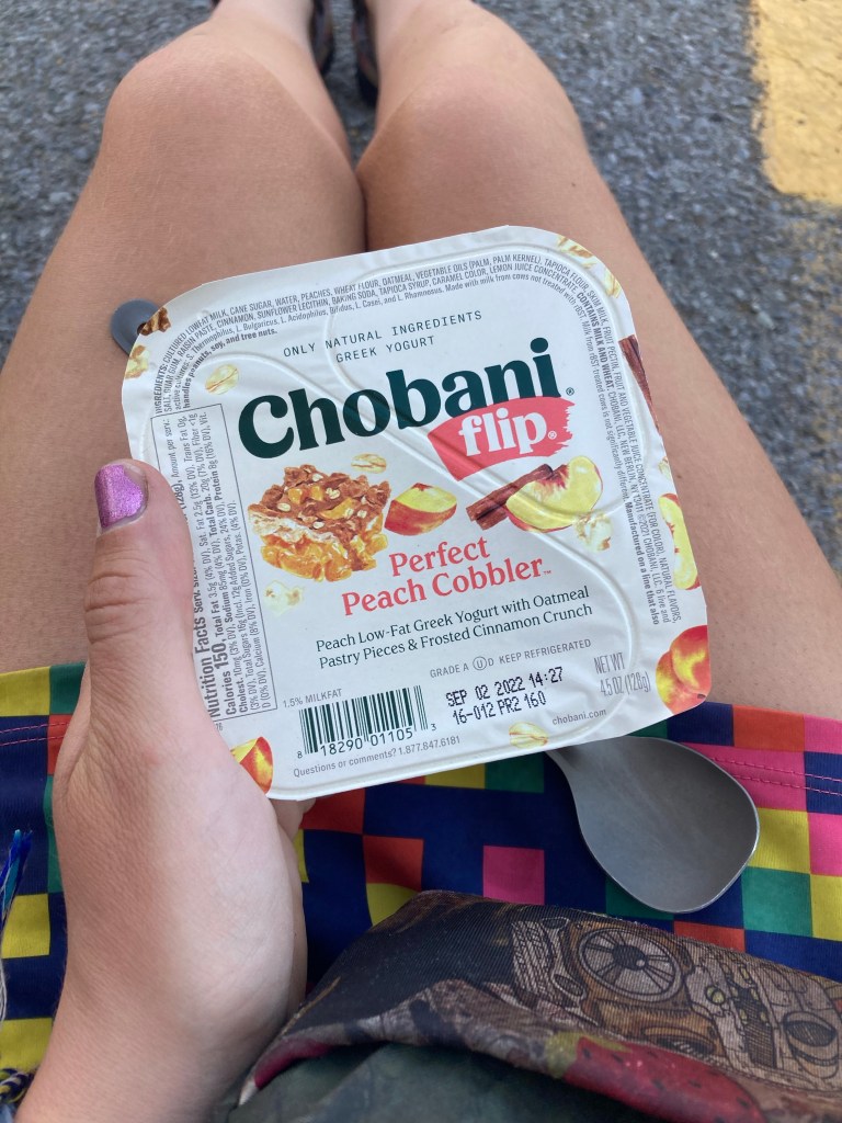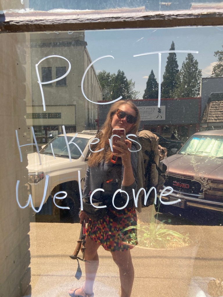 It’s resupply time after that, which isn’t too bad because it’s just a few days. I complete my purchases, then go outside to repack and, naturally, eat a yogurt. Jumbo and Tribute are both sending boxes ahead to Crater Lake because there’s not much of a resupply at the store there. So after we’ve packed up this stretch of food, we walk to the post office once again so that they can send their stuff. I also have a few small items to send home.