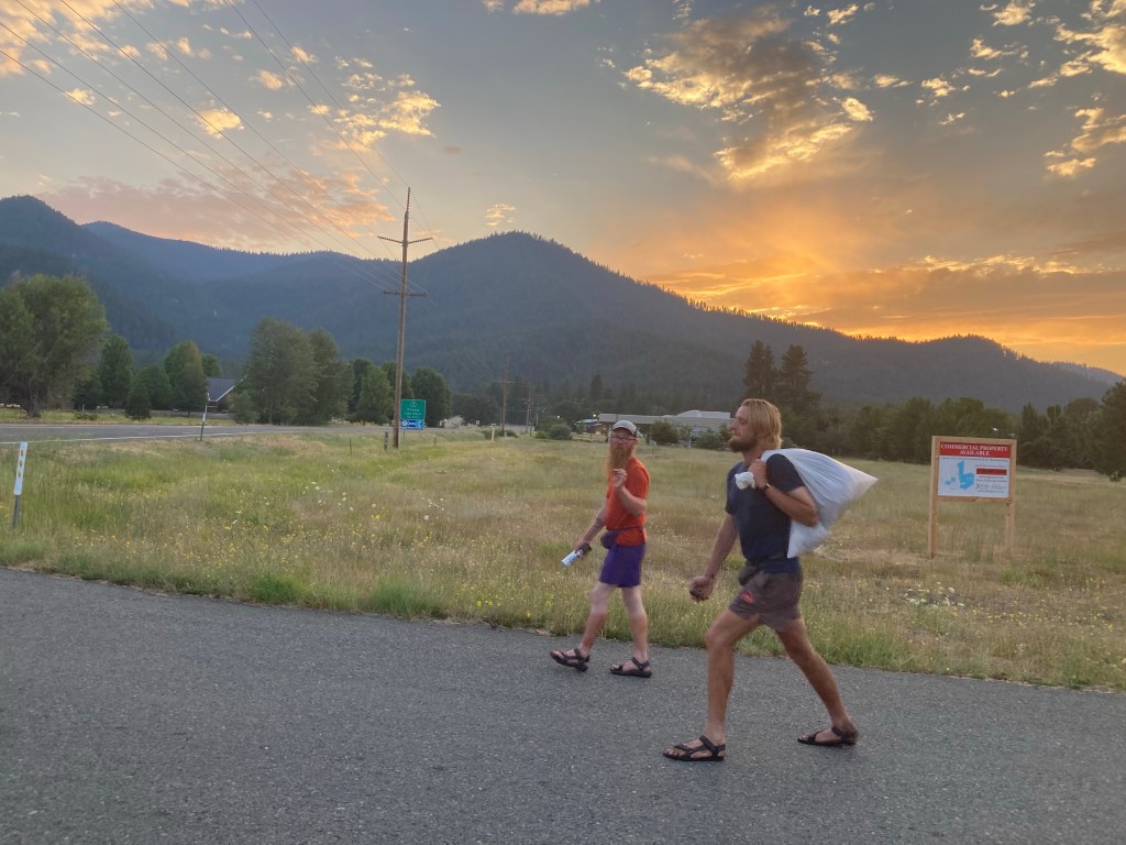 While Jumbo is at the trailhead waiting when I get there, Tribute is not. I think he probably went to town already, but Jumbo is convinced that he would have waited. So we walk around trying to see if we can find him, but he’s not there. “I think he’s in town, dude,” I say, and we walk closer to the road to hitch.