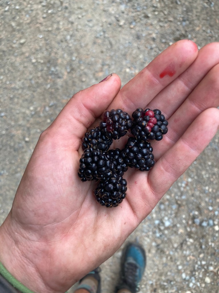 Since we only have six miles, we wake slowly. It’s still cloudy this morning, that pleasant after-rain hangover, and it’s such a nice change of pace from the blaring sun. As we have breakfast, pack up, and start walking down the road, though, we begin to get concerned. The sun is the bleeding orange ball of light that means fire. We haven’t heard about any fires, but then again, we haven’t really had service for the past few days.