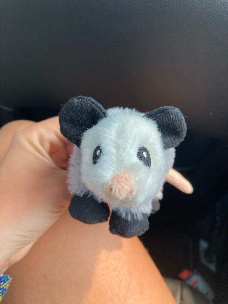 Every single hiker is there. We see Moon and his crew, Leia, Brainstorm and Manners, and a few others we know by sight. It’s amazing to catch up with everyone, exchange stories about getting out of the fire, and discuss our plans. I pick up some fuel, new tent stakes (to replace the ones I beat to a useless angle and so that Jumbo can have the one he lent me ages ago back), and a splurge meal of Peak Refuel chicken coconut curry. Then, just as I’m about to check out, I notice a rack of really cute animal keychains. One of them is a possum that just calls to me. I feel like I deserve some happiness, so I add her to my pile.
