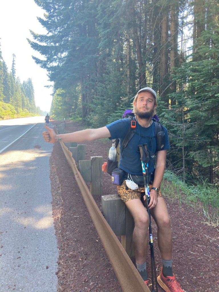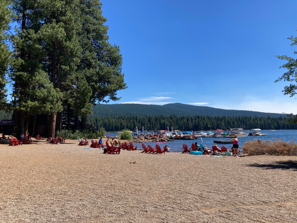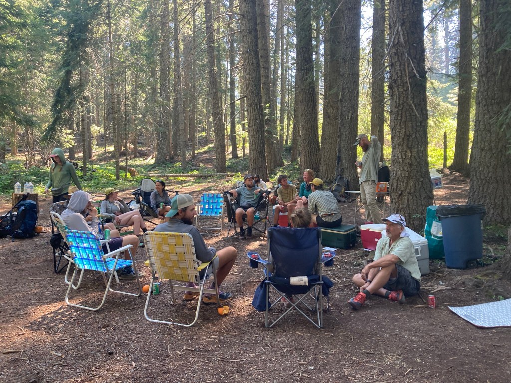 After lunch we go to the general store, where I get an iced coffee and drink it while sitting on a swing. Monica calls me and we chat for a while, then I go down to the water and attempt unsuccessfully to take a nap. Jumbo is in mile-making mode, though, so we aren’t hanging around for long. We go back up to the deck and pack up, then start walking on the road that leads back to trail. I get us a hitch after a few minutes, and we’re dropped off back at the trail magic refreshed and ready to go… more or less.