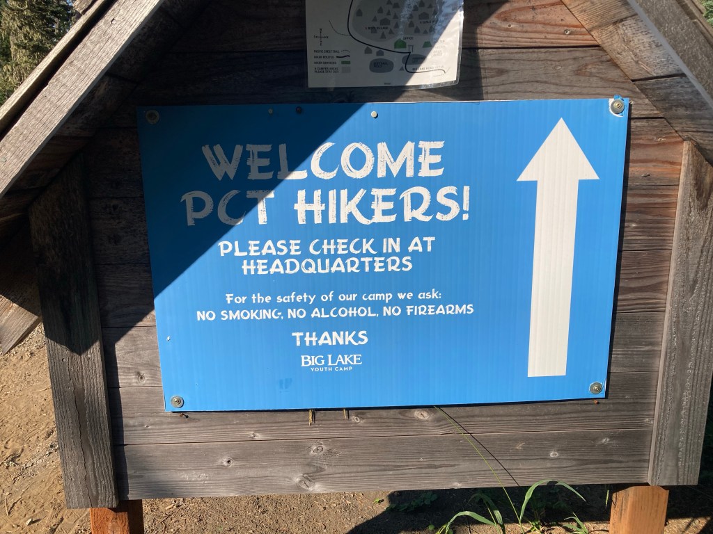 We take the side trail and walk the 0.8 miles to Big Lake Youth Camp. When we arrive, we hear the sounds of kids playing capture the flag as we follow signs to the headquarters to check in. It’s a beautiful camp with cute A-frame cabins scattered among well-maintained mulched walkways. The woman at the headquarters directs us to the PCT hiker building, and we take showers and put in a load of laundry so that we won’t have to spend time doing this tomorrow in Bend.