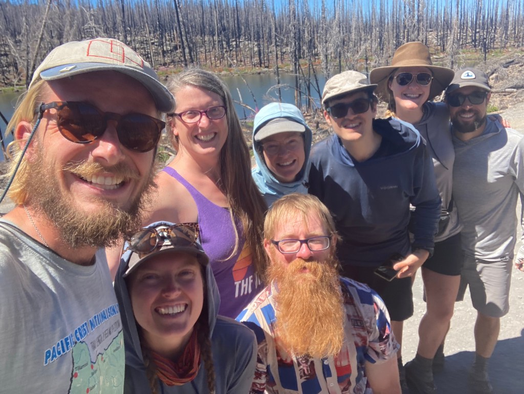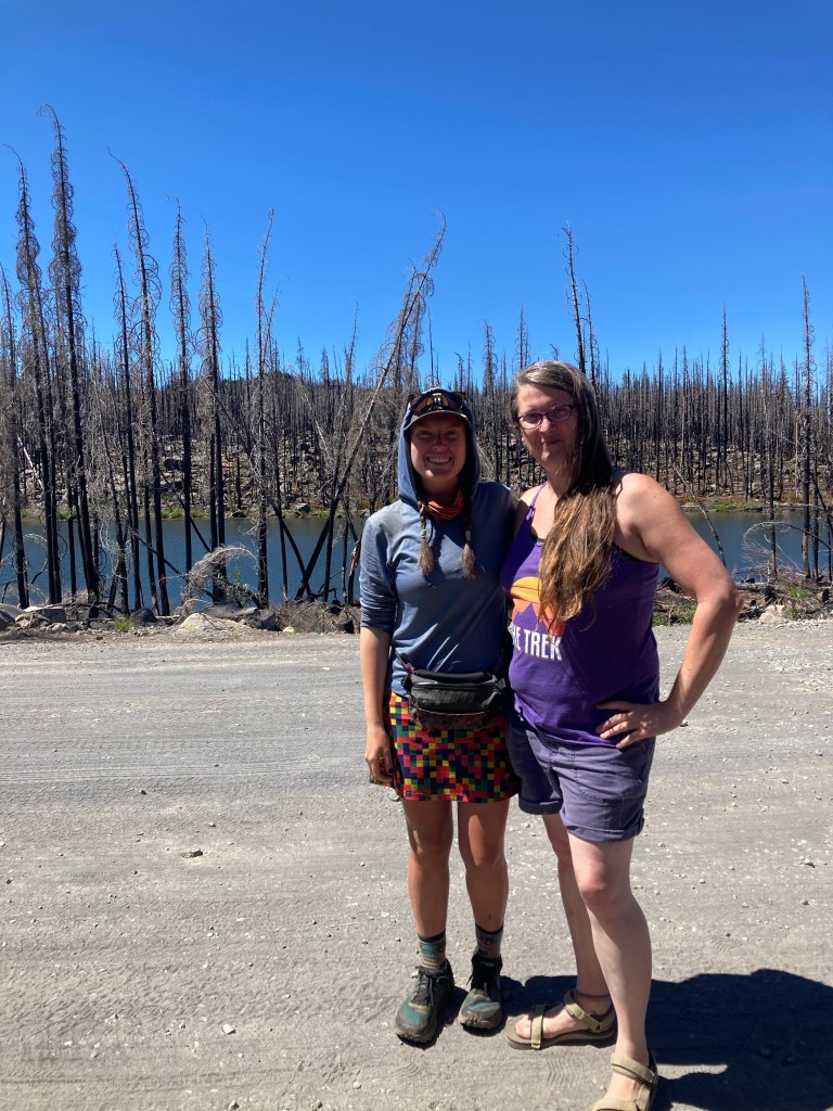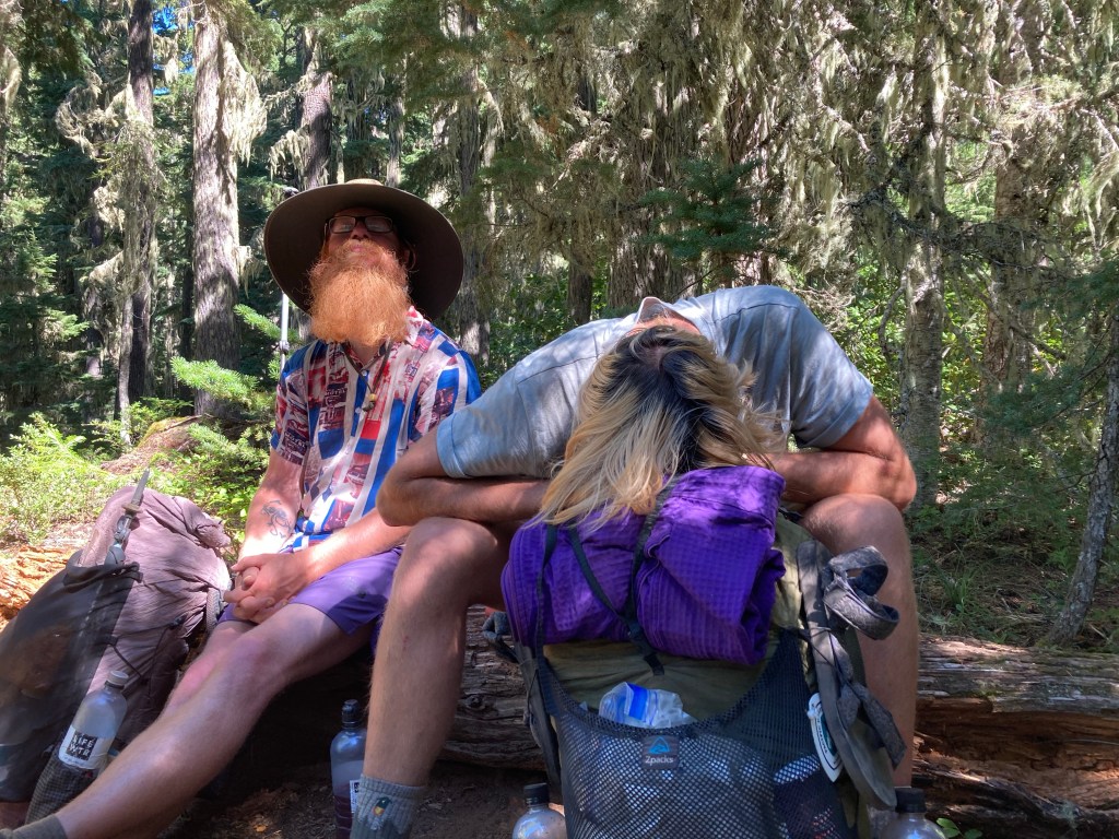 Back on the trail, it’s a burn for a little while, but it’s not long before it gives way to lovely pine forest again. We hike and chat with Merlin for a bit, then wind up running into Leia and talking with her. We pull over for what we intend to be a short break by a pond, but it turns out that we are inexplicably exhausted, and we all fall asleep on the ground.