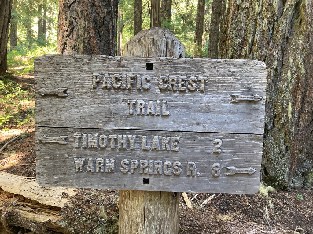 I’m feeling slow this afternoon, so I walk behind the others for the last climb of the day and then the long descent to Timothy Lake. I listen to more of my book, then switch to the new Sylvan Esso album to help me up the hill. I like some of the songs right away, but a few seem like they might need a few listens before I decide how I feel. Once I start going down again, I switch back to the book, but I still have an hour left when I get to a water source and wind up taking a break.