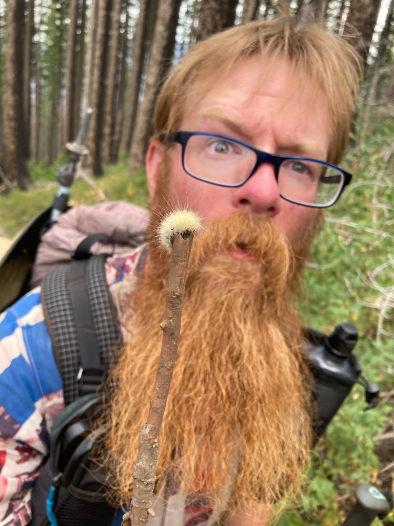 Soon I come upon J and T taking a break at a campsite. I’m relieved because I was planning to stop here anyway. I plop my stuff down and set about making a coffee. Before long, I decide that it’s time for a proper snack, so I make a salami and cheese wrap. Jumbo lies down for a nap and I start to join him. Then Dilly Dally comes up the trail to join us, and we wind up chatting for an hour or so. Eventually, after several hot drinks and a lot of lounging around, we finally get moving again.