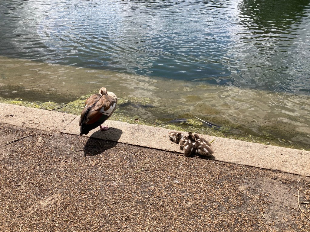 We continue walking once we feel refreshed. The path is right up against the Serpentine (I have the Alt-J song “Get Better” stuck in my head all day as a result, because there’s a line that goes “A younger you and a younger me, meeting at the Serpentine…”). We observe more baby ducks (why are there so many baby ducks, and why are their moms so chill with them being so close to us?), then walk across the bridge to the Princess Diana memorial fountain.