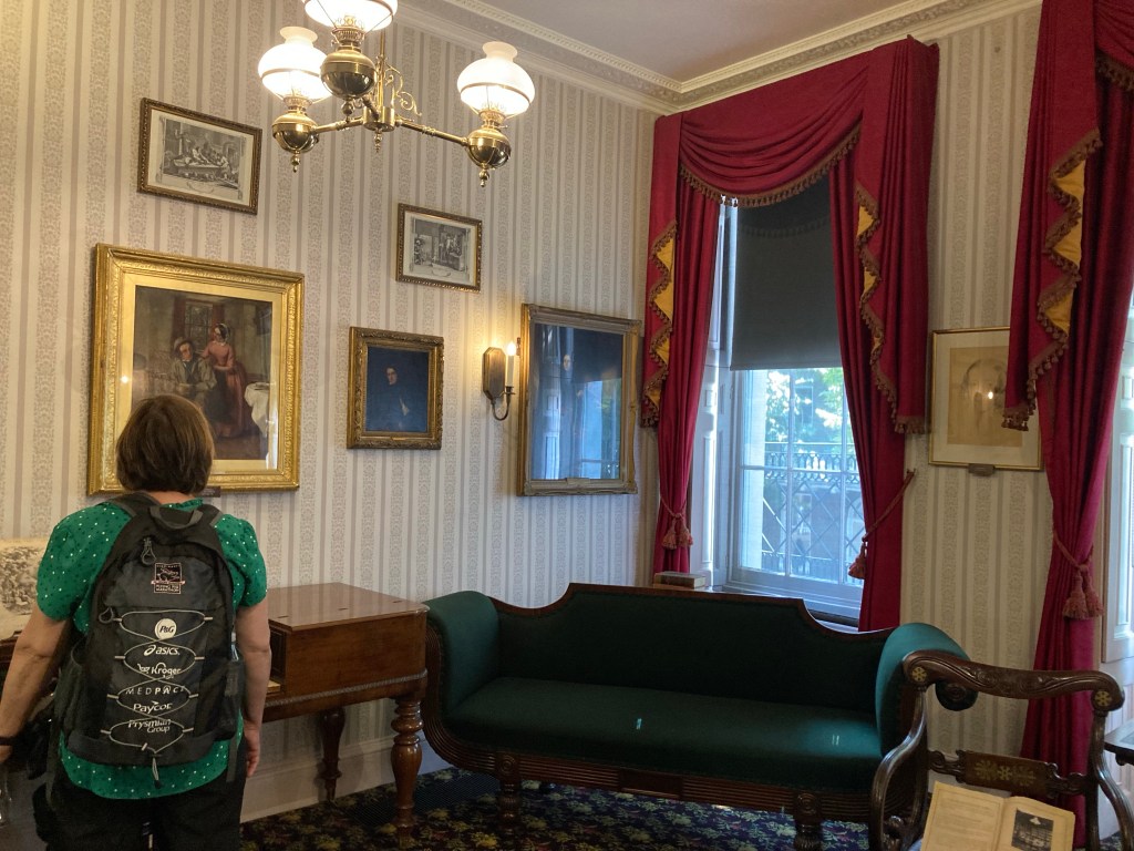 It’s a relatively short Tube ride to the Charles Dickens museum. I’m not the world’s biggest Dickens fan or anything, but I like his work, and there is something special about being in the place where the person who birthed inspiring words lived. We wander about the five stories looking at artifacts, books, manuscripts, furniture, and other items belonging to the writer and his family. Some items of note include Dickens’s desk (he sat right there and wrote all those stories!) and his formal suit that he called his “fancy dress.” Same, Dickens, same. Love a good fancy dress, me. There’s a cafe on the ground floor with a lovely little garden. We sit there next to a fountain and enjoy some cold drinks. I could live in London if I had a little garden like this, all flowers and flowing water and stone.