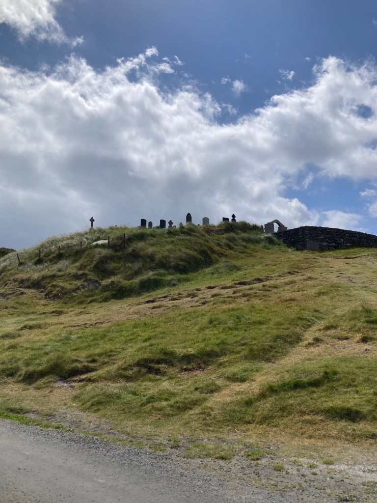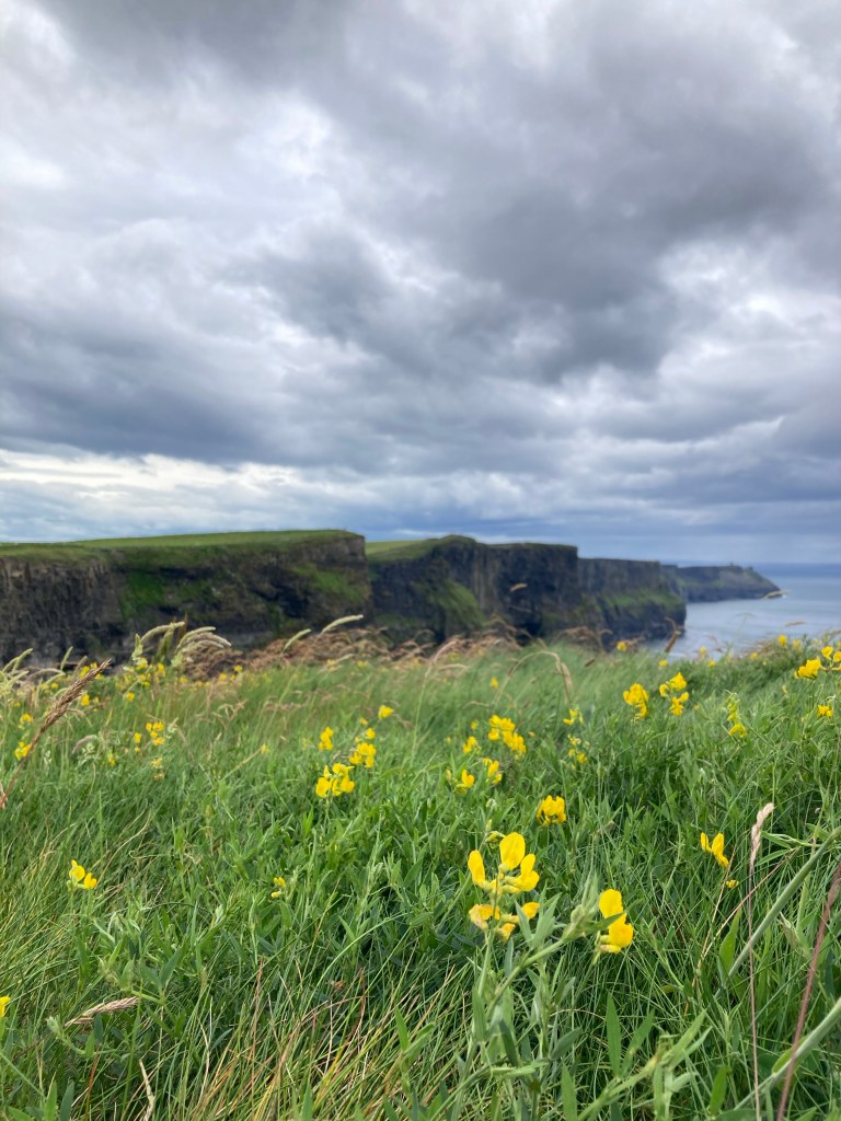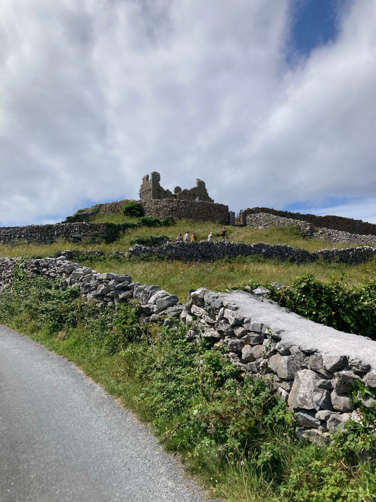 But when I am awake, I take in the landscape as it changes. Soon we’re in the Burrren, which is characterized by its treeless, limestone-covered hills. There are stone fences everywhere here, too, including ones going all the way up and over the hills. Jerry says that the stone fences we see everywhere in the fields mark grazing areas, but also serve the functional purpose of removing limestone rocks so that people can use the land. They really just built stone fences because it was the most effective way to get the rocks out. However, the fences going up the hills in the Burren, Jerry says, have a sadder history. They’re called Famine Walls. During the great Irish Famine, families who lost everything and were on the brink of starvation often entered work houses, where they were separated and paid only in meager, terrible food. Many times in this area, the men were put to work building these “famine walls” that went up and over the Burren hills. These fences are not functional; they don’t divide land or get rid of rocks for grazing. They were literally just made for the sake of forcing people to work. Many men died in the building of them. Suddenly, these stone fences we can see everywhere look different. Knowing your history changes how you see the world.