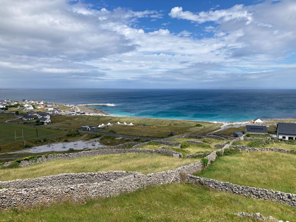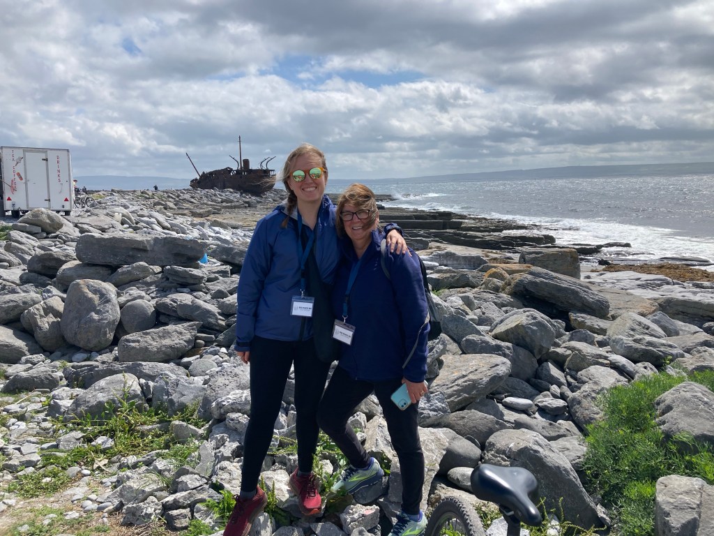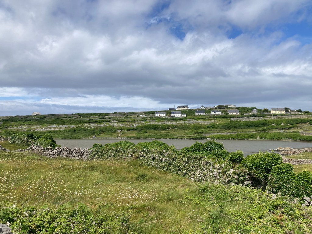 Laura, mom, and I, plus three other passengers, get onto a horse-drawn cart for a tour around the island. I quickly realize that Laura is one of those people who has never met a stranger. She is earnest and unabashed, one of those friendly souls who bring out the unafraid extrovert in me. Thank God she’s on our tour, too, because she asks our driver all kinds of questions about himself (he gives his Gaelic name, but says in English it’s Martin; he has a farm with a few cows and two horses that he rotates for tours; he gives four tours a day), his horse (named Jack), and life on Inis Oirr (everyone speaks Irish as their first language, sometimes kids from the mainland come over and take Irish language courses and live with local families; there is one pub and it’s very good). I later learn that Laura is a journalist, which very much tracks.