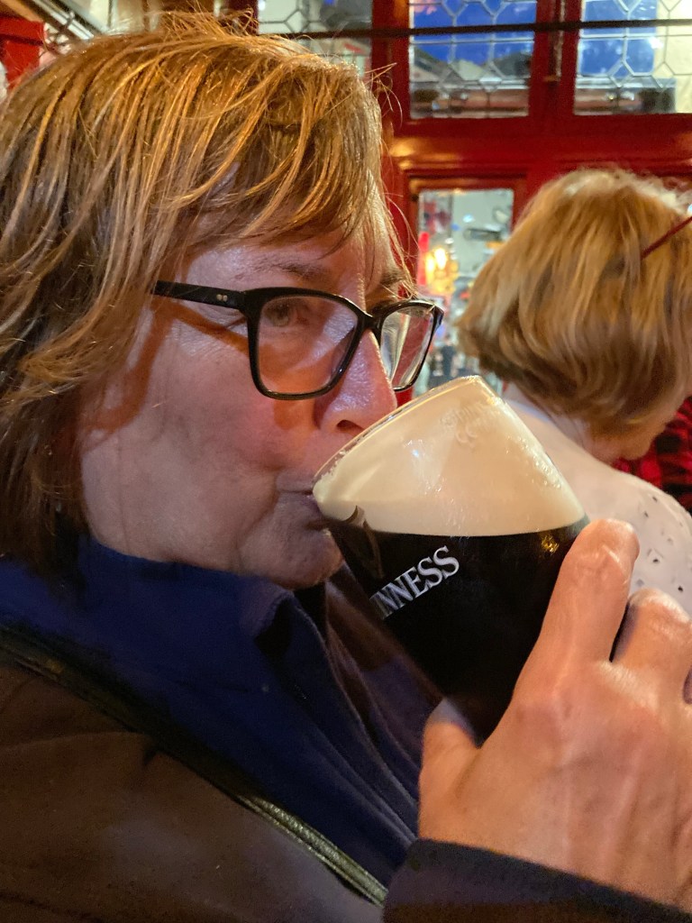 It’s a literal squeeze to even get in the door, and a very long time goes by before I can physically get to the bar to order a Guinness, but it’s worth it. There is a group of musicians playing traditional Irish music and as I stand there listening, I feel myself transported somewhere, sometime else. It’s mesmerizing, listening to the lilting melodies that are simultaneously impossible to follow and easy and instinctual feeling. It’s amazing to watch them follow each other’s cues, smiling and rocking in time with the music, their fingers flying. It’s such a good time that Mom asks to try a sip of my Guinness. (She doesn’t drink much and doesn’t love the taste of alcohol in general.) She makes a face, but then takes another sip. “It’s not bad, actually,” she says.
